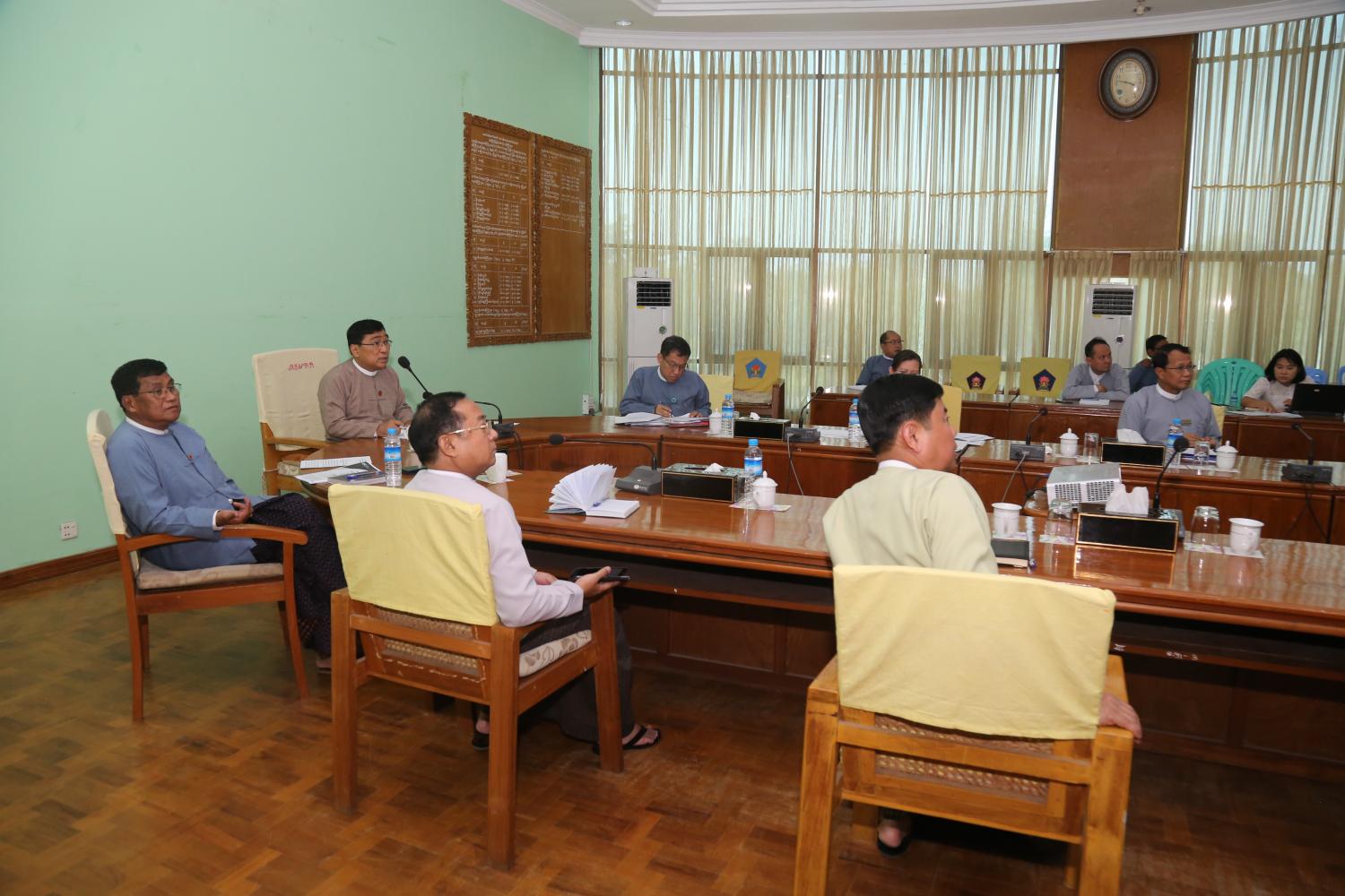 ပြည်တွင်းနေရပ်စွန့်ခွာသူများ ယာယီခိုလှုံရာစခန်းများ (IDP စခန်းများ) တွင် COVID-19 ရောဂါ ကာကွယ်၊ ထိန်းချုပ်၊ ကုသရေးအတွက် လုပ်ငန်းစီမံချက် ရေးဆွဲဆောင်ရွက်နိုင်ရေးနှင့် ပတ်သက်၍ ညှိနှိုင်းဆွေးနွေးခြင်းကို ယနေ့မွန်းလွဲပိုင်းတွင် လူမှုဝန်ထမ်း၊ ကယ်ဆယ်ရေးနှင့် ပြန်လည်နေရာ ချထားရေးဝန်ကြီးဌာန၊ အစည်းအဝေးခန်းမ၌ ကျင်းပသည်။