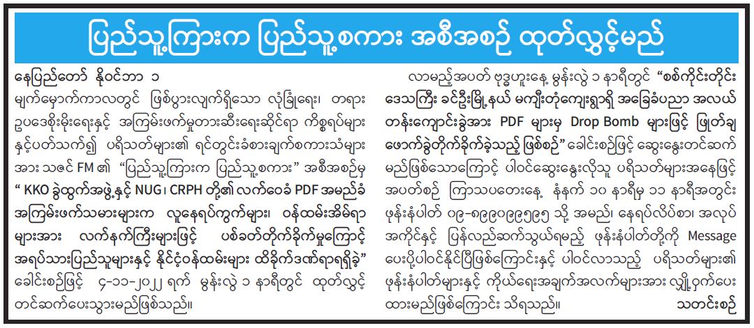 ပြည်သူ့ကြားက ပြည်သူ့စကား အစီအစဉ် ထုတ်လွှင့်မည်