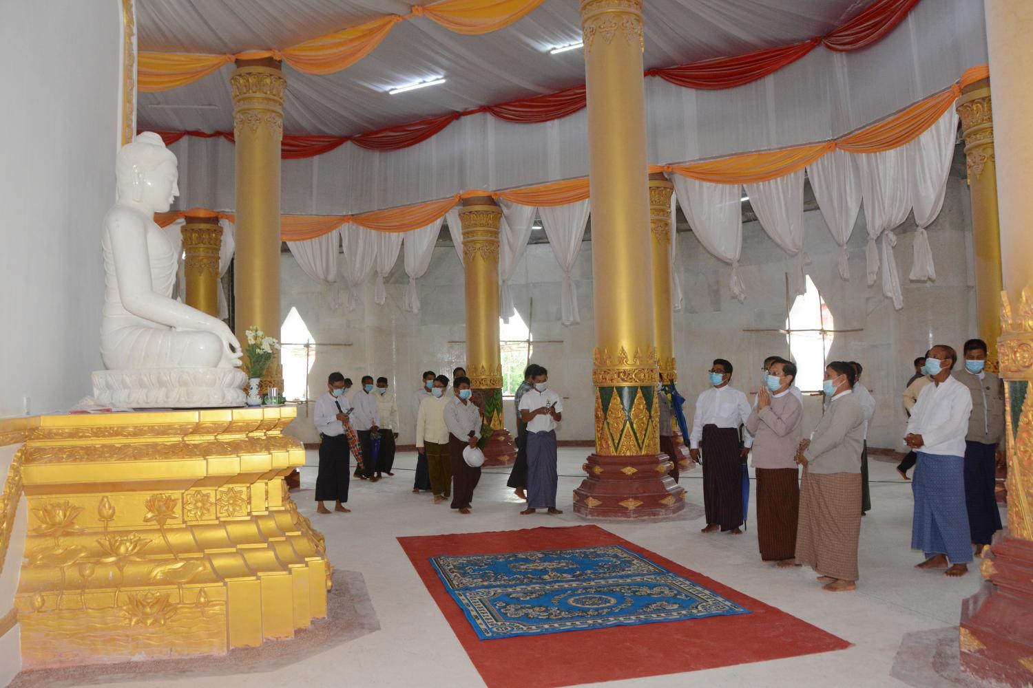 ပြည်တောင်စုဝန်ကြီး သူရဦးအောင်ကို နေပြည်တော်၊ ဒက္ခိဏသီရိမြို့နယ်၊ ရာဇသင်္ဂဟလမ်း၊ ကံ့ကော်ပန်းအဝိုင်းအနီးတွင် တည်ထားကိုးကွယ်လျက်ရှိသော ထာဝရငြိမ်းချမ်းရေးစေတီတော် ဘက်စုံအချောသတ်မွမ်းမံတည်ဆောက်ရေး လုပ်ငန်းများအား ကြည့်ရှုစစ်ဆေး
