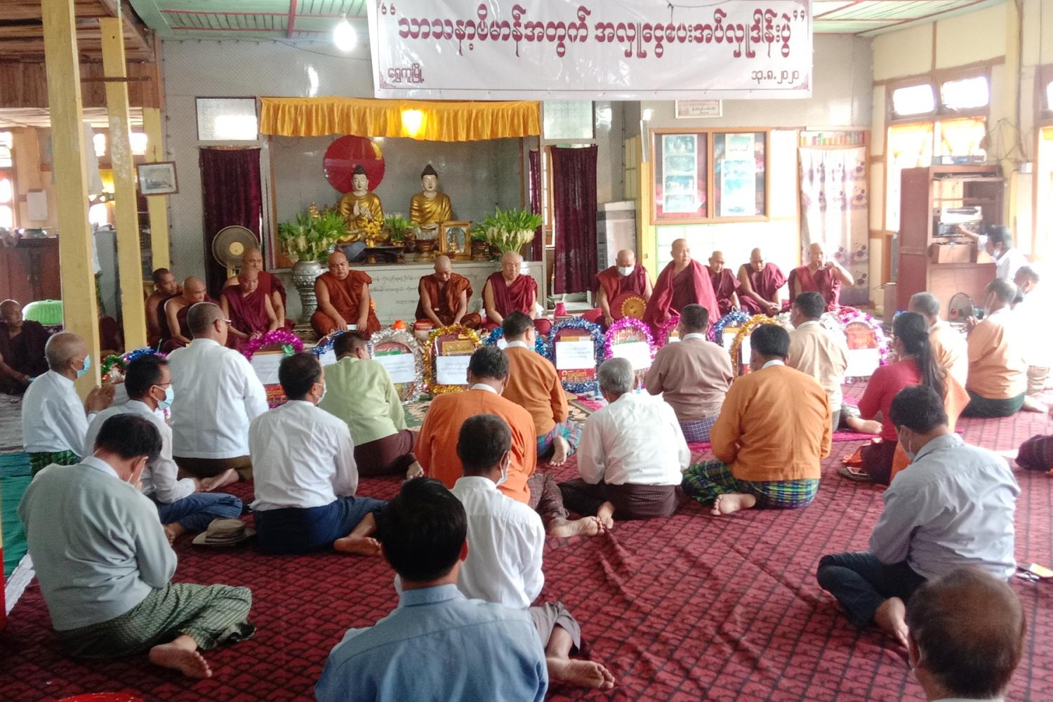 သာသနာ့ဗိမာန်အတွက် အလှူငွေကျပ်သိန်း (၁၀၀) ပေးအပ်လှူဒါန်းခြင်းနှင့် ဝါဆိုသင်္ကန်း ဆက်ကပ်ခြင်း အခမ်းအနား ရွှေကူမြို့၌ ကျင်းပ
