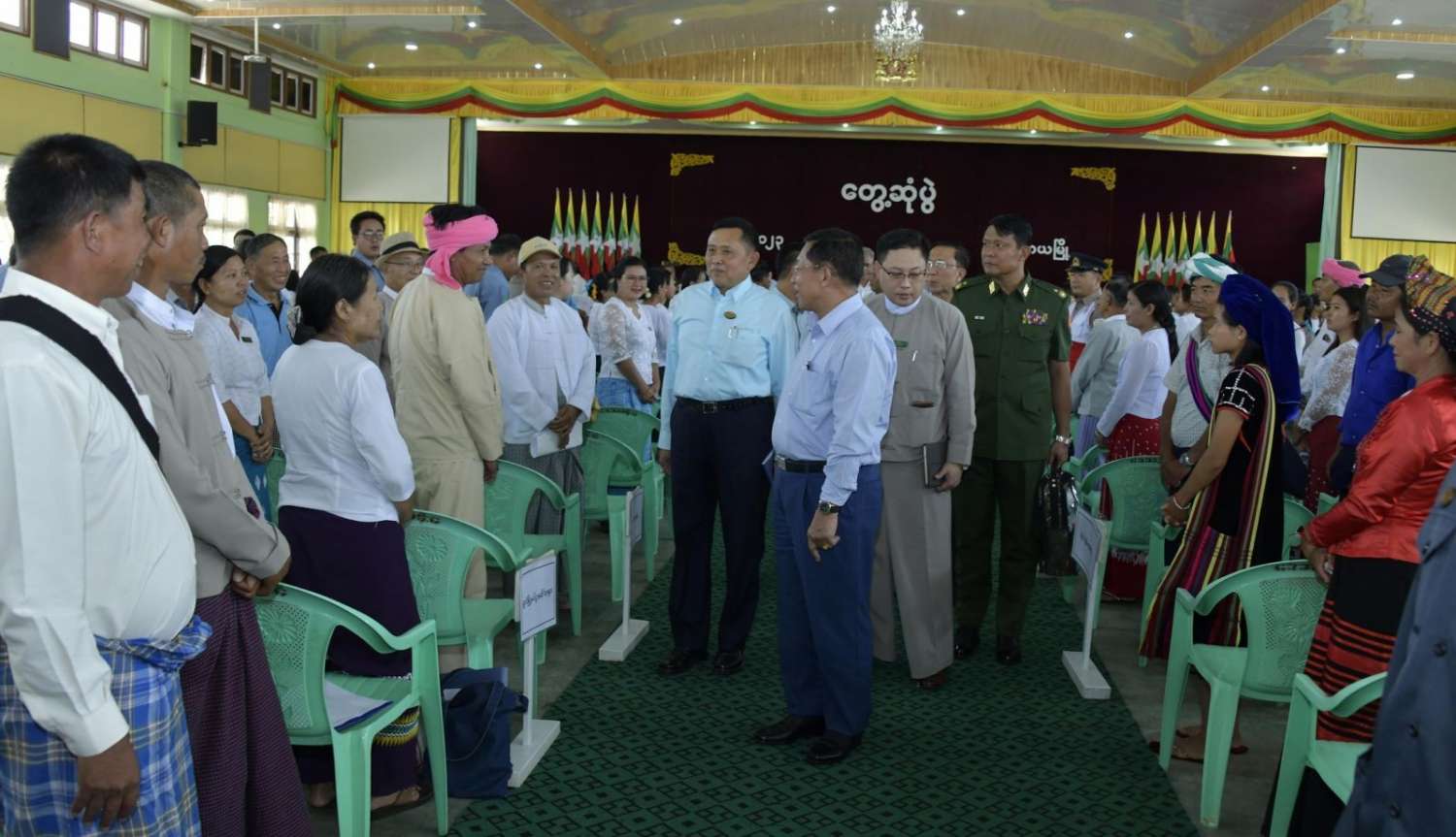ထို့နောက် တွေ့ဆုံပွဲပြုလုပ်မည့် ဓနုကိုယ်ပိုင်အုပ်ချုပ်ခွင့်ရဒေသခန်းမသို့ ရောက်ရှိကြပြီး အခမ်းအနားကို စတင်ကျင်းပပြုလုပ်ရာ ဓနုကိုယ်ပိုင်အုပ်ချုပ်ခွင့်ရဒေသ စီမံအုပ်ချုပ်ရေးအဖွဲ့ဥက္ကဋ္ဌနှင့် ရှမ်းပြည်နယ်ဝန်ကြီးချုပ်တို့က ဓနုကိုယ်ပိုင်အုပ်ချုပ်ခွင့်ရဒေသ နယ်မြေဒေသဆိုင်ရာအချက်အလက်များ၊ စိုက်ပျိုးမွေးမြူရေးလုပ်ငန်းများဆောင်ရွက်လျက်ရှိမှု၊ စိုက်ပျိုးရေးထွက်ကုန်များ ပြည်ပသို့တင်ပို့ရောင်းချ လျက်ရှိမှု၊ MSME လုပ်ငန်းများအတွက် အထောက်အကူပြုသင်တန်းများ ဖွင့်လှစ်ဆောင်ရွက်လျက်ရှိမှု၊ နိုင်ငံ့စီးပွားမြှင့်တင်ရေးရန်ပုံငွေမှ ထုတ်ပေးထားသည့် ရင်းနှီးမတည်ငွေများအား စိုက်ပျိုးမွေးမြူရေးဆိုင်ရာလုပ်ငန်းများအလိုက် ထုတ်ချေးပေးထားမှုနှင့်အာလူး အအေးခန်းတည်ဆောက်ထားရှိမှု၊ ဓနုကိုယ်ပိုင် အုပ်ချုပ်ခွင့်ရဒေသအတွင်း စိုက်ပျိုးမွေးမြူရေး လုပ်ငန်းများဆောင်ရွက်လျက်ရှိမှု၊ MSME လုပ်ငန်းများဖြင့် ကုန်ထုတ်လုပ်မှုများဆောင်ရွက်၍ ပြည်တွင်း၊ ပြည်ပသို့ တင်ပို့ရောင်းချလျက်ရှိမှု၊ သတ္တုသန့်စင်ခြင်း လုပ်ငန်းများ ဆောင်ရွက်လျက်ရှိမှု၊ ကုန်ထုတ်လုပ်မှုလုပ်ငန်းများအတွက် လိုအပ်သည့် နည်းပညာ အထောက်အကူပြုသင်တန်းများ ဖွင့်လှစ်သင်ကြားပေးလျက်ရှိမှု၊ ရှမ်းပြည်နယ်အတွက် ထုတ်ပေးထားရှိ သည့် နိုင်ငံ့စီးပွားမြှင့်တင်ရေးရန်ပုံငွေမှ MSME လုပ်ငန်းများအတွက် အစုအဖွဲ့များအလိုက် ရင်းနှီးမတည်ငွေများ ထုတ်ချေးပေးထားမှု၊ ဓနုကိုယ်ပိုင်အုပ်ချုပ်ခွင့်ရဒေသအတွင်း ကုန်ထုတ်လမ်းများ ဖောက်လုပ်ပေးထားမှု၊ နေရောင်ခြည်စွမ်းအင်သုံး လျှပ်စစ်ဓာတ်အားထုတ်လုပ်၍ မြစ်ရေတင်လုပ်ငန်းများဆောင်ရွက်ပေးထားမှု၊ ရေရရှိရေးလုပ်ငန်းများ ဆောင်ရွက်ပေးထားမှုနှင့် MSME လုပ်ငန်းများဖွံ့ဖြိုး တိုးတက်စေရေး ဆက်လက်ဆောင်ရွက်သွားမည့် အခြေအနေများနှင့်ပတ်သက်၍ ရှင်းလင်းတင်ပြသည်။