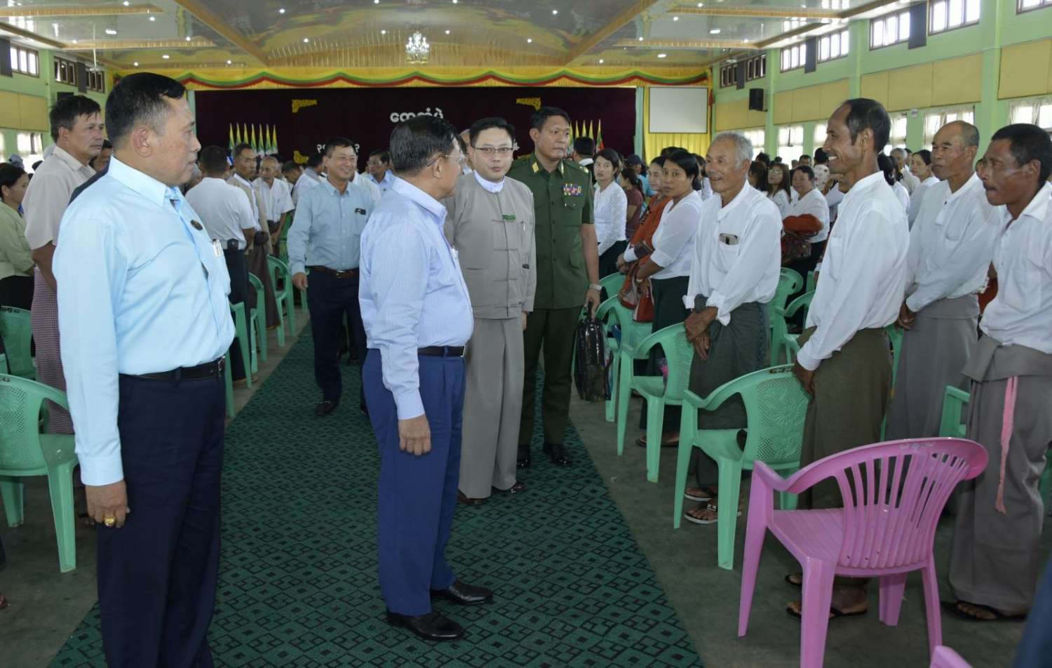 ထို့နောက် နိုင်ငံတော်စီမံအုပ်ချုပ်ရေးကောင်စီဥက္ကဋ္ဌ နိုင်ငံတော်ဝန်ကြီးချုပ်သည် တက်ရောက်လာကြသည့် အသေးစား၊ အငယ်စားနှင့် အလတ်စားစီးပွားရေး(MSME) လုပ်ငန်းရှင်များအား ရင်းရင်းနှီးနှီးနှုတ်ဆက်သည်။