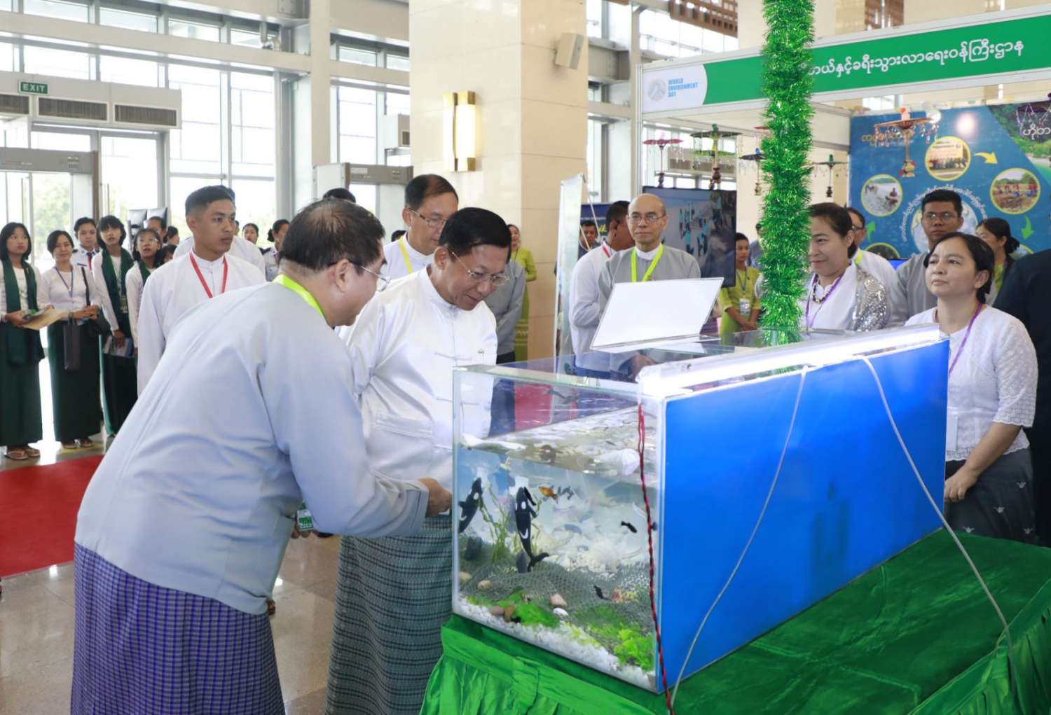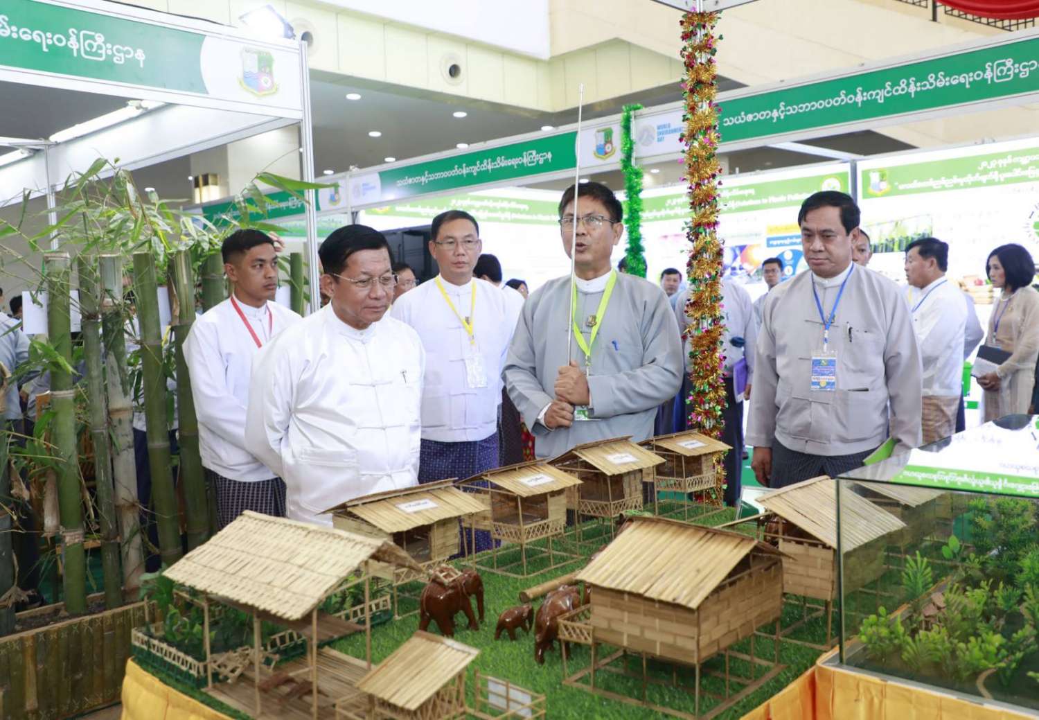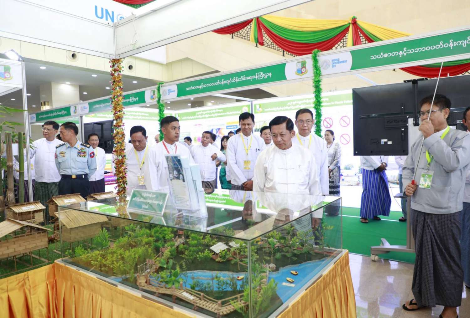 ထို့နောက် နိုင်ငံတော်စီမံအုပ်ချုပ်ရေးကောင်စီဥက္ကဋ္ဌ နိုင်ငံတော်ဝန်ကြီးချုပ်နှင့် အခမ်းအနား တက်ရောက်လာကြသူများသည် ၂၀၂၃ ခုနှစ် ကမ္ဘာ့ပတ်ဝန်းကျင်ထိန်းသိမ်းရေးနေ့ အထိမ်းအမှတ်ပြခန်းများကို စိတ်ပါဝင်စားစွာဖြင့် လှည့်လည်ကြည့်ရှုခဲ့ကြကြောင်း သတင်းရရှိသည်။