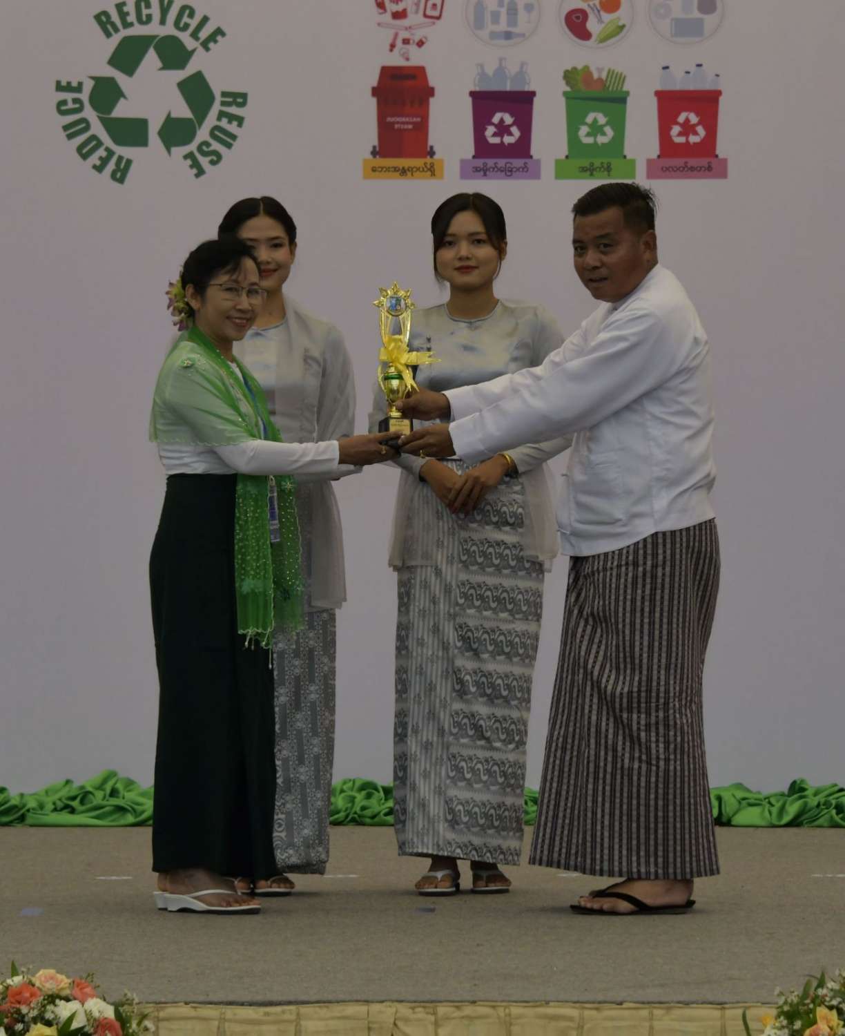 ယင်းနောက် ကောင်စီတွဲဖက်အတွင်းရေးမှူး ဒုတိယဗိုလ်ချုပ်ကြီး ရဲဝင်းဦးက အမျိုးသားအဆင့် သန့်ရှင်း၍ စိမ်းလန်းစိုပြည်သောကျောင်း (အထက်တန်းအဆင့်) ပထမ၊ ဒုတိယနှင့် တတိယဆုရရှိကြသည့် ကျောင်းများကိုလည်းကောင်း၊ ကောင်စီဝင် ဒုတိယဝန်ကြီးချုပ်နှင့် ပြည်ထောင်စုဝန်ကြီး ဗိုလ်ချုပ်ကြီး မြထွန်းဦးက စိမ်းလန်းစိုပြည်သောကျောင်း (မူလတန်းအဆင့်) ပထမ၊ ဒုတိယနှင့် တတိယဆုရရှိသည့် ကျောင်းများကိုလည်းကောင်း၊ ကောင်စီဝင် ဒုတိယဗိုလ်ချုပ်ကြီး မိုးမြင့်ထွန်းက ကမ္ဘာ့ပတ်ဝန်းကျင်ထိန်းသိမ်းရေးနေ့ အထိမ်းအမှတ် အလွတ်တန်းဆောင်းပါး ပထမ၊ ဒုတိယနှင့် တတိယဆုရရှိသူများကိုလည်းကောင်း၊ ကောင်စီဝင် ပြည်ထောင်စုဝန်ကြီး ဒုတိယဗိုလ်ချုပ်ကြီး စိုးထွဋ်က ကမ္ဘာ့ဝန်းကျင်ထိန်းသိမ်းရေးနေ့ အထိမ်းအမှတ် အလွတ်တန်းစာစီစာကုံး ပထမ၊ ဒုတိယနှင့် တတိယ ဆုရရှိသူများကိုလည်းကောင်း ဆုများပေးအပ်ချီးမြှင့်ကြသည်။