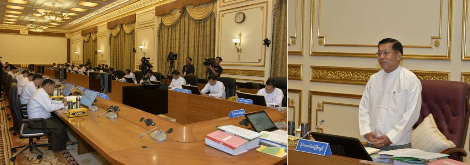 ပြည်ထောင်စုအစိုးရအဖွဲ့အစည်းအဝေး အမှတ်စဉ် (၃/၂၀၂၃)ကို ယနေ့မွန်းလွဲပိုင်းတွင် နေပြည်တော်ရှိ နိုင်ငံတော်စီမံအုပ်ချုပ်ရေးကောင်စီဥက္ကဋ္ဌရုံး အစည်းအဝေးခန်းမ၌ကျင်းပရာ နိုင်ငံတော်စီမံအုပ်ချုပ်ရေးကောင်စီဥက္ကဋ္ဌ နိုင်ငံတော်ဝန်ကြီးချုပ် ဗိုလ်ချုပ်မှူးကြီး မင်းအောင်လှိုင် တက်ရောက်အမှာစကား ပြောကြားသည်။