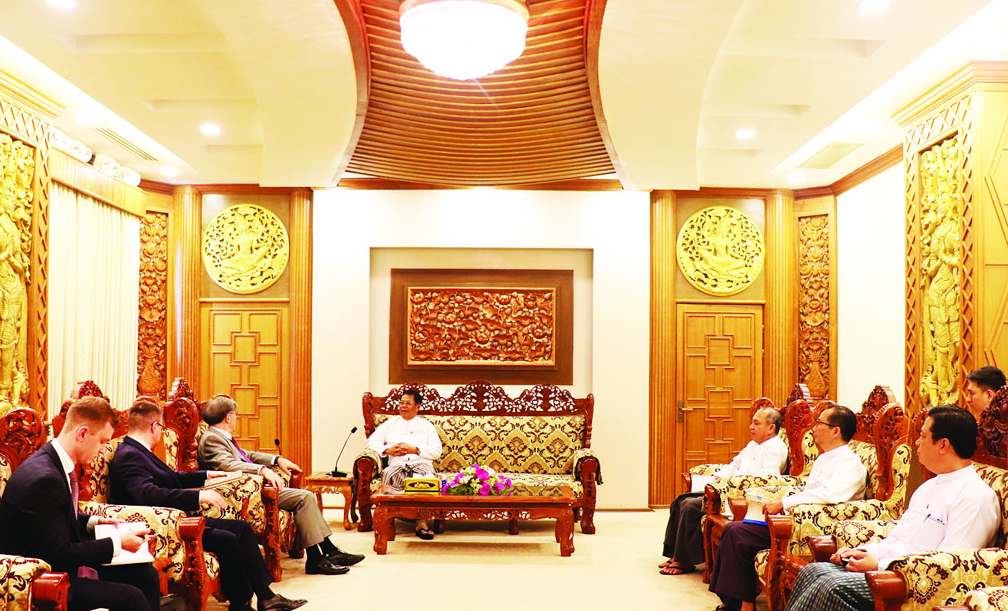 ဒုတိယဝန်ကြီးချုပ်နှင့် နိုင်ငံခြားရေးဝန်ကြီးဌာန ပြည်ထောင်စုဝန်ကြီး ဦးသန်းဆွေသည် ပြည်ထောင်စုသမ္မတမြန်မာနိုင်ငံတော်ဆိုင်ရာ အထူးအာဏာကုန်လွှဲအပ်ခြင်းခံရသော ရုရှားဖက်ဒရေးရှင်းနိုင်ငံ သံအမတ်ကြီးအသစ်အဖြစ် ခန့်အပ်ခံရသည့် မစ္စတာအီစ်ကန်ဒဲအာဇီဇော့ဖ်အား ယနေ့မွန်းလွဲ ၁ နာရီတွင် နေပြည်တော်ရှိ နိုင်ငံခြားရေးဝန်ကြီးဌာန ပြည်ထောင်စုဝန်ကြီး၏ ဧည့်ခန်းမ၌ လက်ခံတွေ့ဆုံသည်။