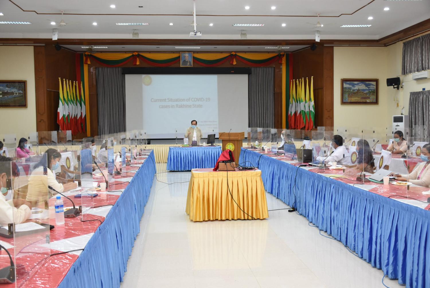 ဗဟိုကူးစက်ရောဂါ တိုက်ဖျက်ရေးဌာနခွဲမှ ဆရာဝန်များ၊ ကျန်းမာရေးမှူးများနှင့် ပြည်သူ့ကျန်းမာရေး ကြီးကြပ်များက ရခိုင်ပြည်နယ်တွင် ကိုဗစ်-၁၉ ကာကွယ်ထိန်းချုပ်ရေး လုပ်ငန်းများ ဆောင်ရွက်နေမှုနှင့် ပတ်သက်၍ ဘက်စုံဆန်းစစ်သုံးသပ်တင်ပြမှု အစည်း အဝေးကို ယနေ့နံနက်ပိုင်းက နေပြည်တော်ရှိ ကျန်းမာ ရေးနှင့်အားကစားဝန်ကြီးဌာန အစည်း အဝေးခန်းမ၌ ကျင်းပသည်။