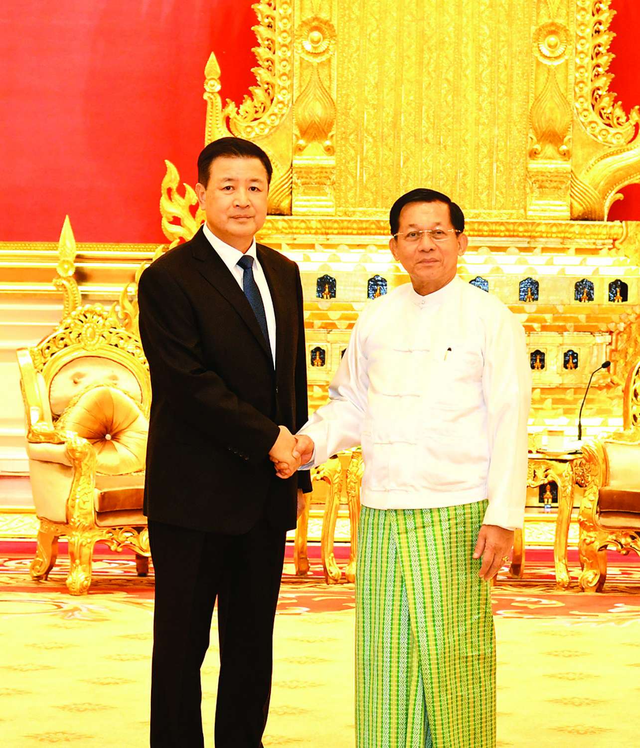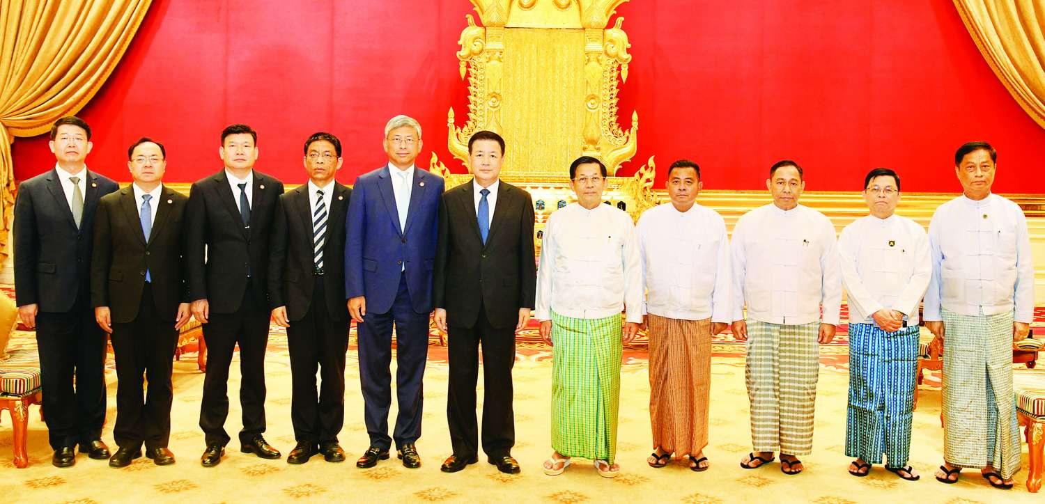 နိုင်ငံတော်စီမံအုပ်ချုပ်ရေးကောင်စီဥက္ကဋ္ဌ နိုင်ငံတော်ဝန်ကြီးချုပ် ဗိုလ်ချုပ်မှူးကြီး မင်းအောင်လှိုင်သည် တရုတ်ပြည်သူ့သမ္မတနိုင်ငံ ကွန်မြူနစ်ပါတီဗဟိုကော်မတီ၏ အတွင်းရေး မှူးချုပ်ရုံး အဖွဲ့ဝင်၊ နိုင်ငံတော်ကောင်စီဝင်နှင့် ပြည်သူ့လုံခြုံရေးဝန်ကြီး H.E. Mr. Wang Xiaohong ဦးဆောင်သော ကိုယ်စားလှယ်အဖွဲ့ကို ယနေ့နံနက်ပိုင်းတွင် နေပြည်တော်ရှိ နိုင်ငံတော်စီမံအုပ်ချုပ်ရေးကောင်စီ ဥက္ကဋ္ဌရုံး သံတမန်ဆောင် ဧည့်ခန်းမ၌ လက်ခံတွေ့ဆုံသည်။