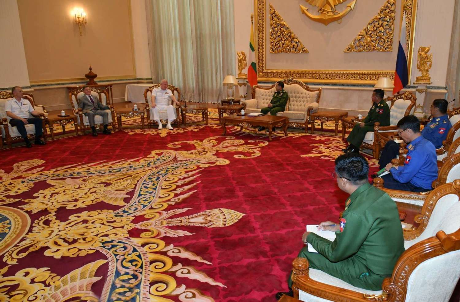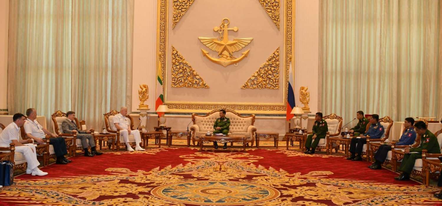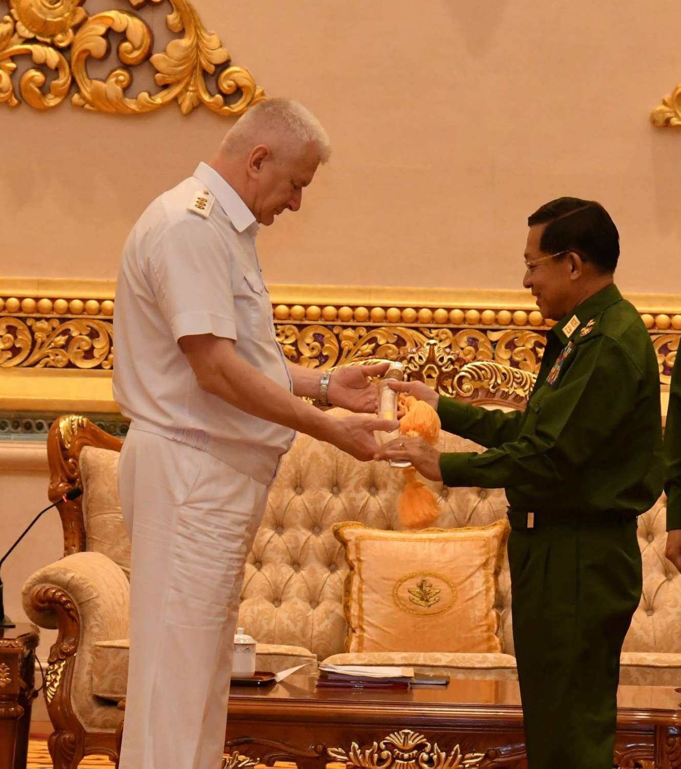 နိုင်ငံတော်စီမံအုပ်ချုပ်ရေးကောင်စီ ဥက္ကဋ္ဌ တပ်မတော်ကာကွယ်ရေးဦးစီးချုပ် ဗိုလ်ချုပ်မှူးကြီး မင်းအောင်လှိုင် သည် ရုရှားဖက်ဒရေးရှင်းနိုင်ငံ ရေတပ်ဦးစီးချုပ် Admiral Nikolai A.EVMENOV ဦးဆောင်သောကိုယ်စားလှယ်အဖွဲ့အား ယနေ့နံနက်ပိုင်းတွင် နေပြည်တော်ရှိ ဇေယျာသီရိဗိမာန် ဧည့်ခန်းမဆောင်၌ လက်ခံတွေ့ဆုံသည်။