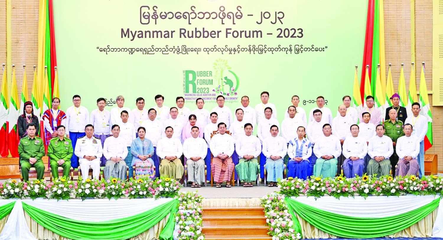 ထို့နောက် နိုင်ငံတော်စီမံအုပ်ချုပ်ရေးကောင်စီ ဥက္ကဋ္ဌ နိုင်ငံတော်ဝန်ကြီးချုပ်နှင့် တာဝန် ရှိသူများသည် မြန်မာနိုင်ငံ ရော်ဘာစိုက်ပျိုးထုတ်လုပ်မှုဆိုင်ရာ အသင်းအဖွဲ့များမှ တာဝန်ရှိသူများ၊ ရော်ဘာစိုက်တောင်သူများနှင့်အတူ မှတ်တမ်းတင်ဓာတ်ပုံရိုက်ကြသည်။
