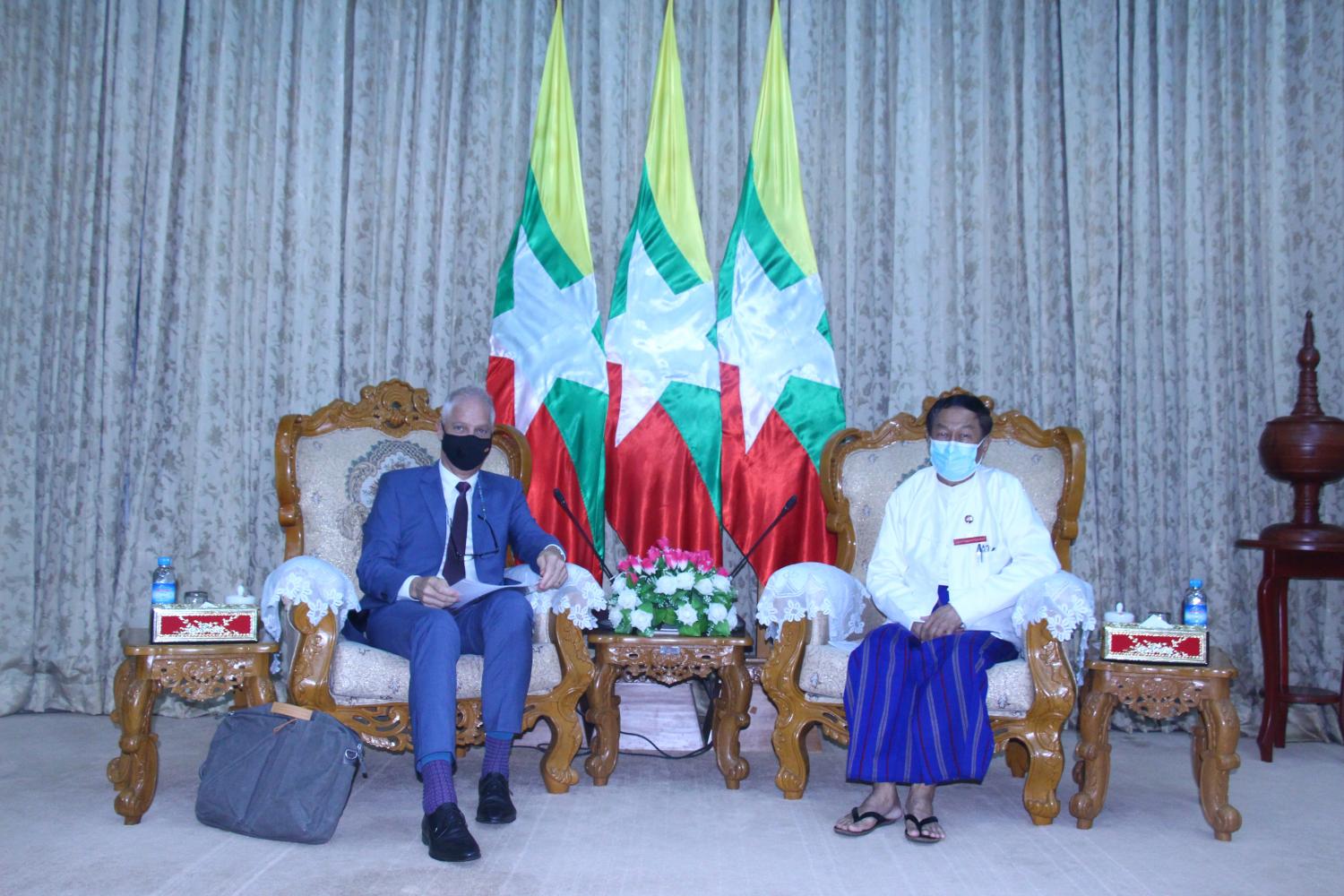 တွေ့ဆုံစဉ် ၂၀၂၀ ပြည့်နှစ် အထွေထွေရွေးကောက်ပွဲကို ကိုဗစ်-၁၉ ရောဂါ ကာကွယ် ထိန်းချုပ်ရေး စံသတ်မှတ်ချက် များနှင့်အညီ အောင်မြင်စွာကျင်းပနိုင်ရေး ပြင်ဆင်ဆောင်ရွက်နေမှု၊ နိုင်ငံရေးပါတီ များနှင့် လွှတ်တော်ကိုယ်စားလှယ်လောင်း များအတွက် ကျင့်ဝတ် (Code of Conduct) ရေးဆွဲ အကောင် အထည်ဖော်ဆောင်ရွက်နိုင်ခဲ့မှု၊ ကျင့်ဝတ်စာအုပ်များ ပုံနှိပ်ဖြန့်ဝေရေးအတွက် ဆွစ်ဇာလန်သံရုံးက အကောင်အထည်ဖော်ဆောင်ရွက်နေမှု၊ နိုင်ငံရေးပါတီများက ကျင့်ဝတ် အကောင် အထည်ဖော်မှုအပေါ် စောင့်ကြည့်လေ့လာမည့်ကော်မတီဖွဲ့စည်းဆောင်ရွက်မှု၊ ၂၀၂၀ ပြည့်နှစ် အထွေထွေရွေး ကောက် ပွဲတွင် ဆွစ်ဇာလန်သံရုံးမှ လေ့လာသွားမည့်အစီအစဉ်များနှင့်စပ်လျဉ်း၍ ရင်းနှီးပွင့်လင်းစွာ ဆွေးနွေးခဲ့ကြ သည်။