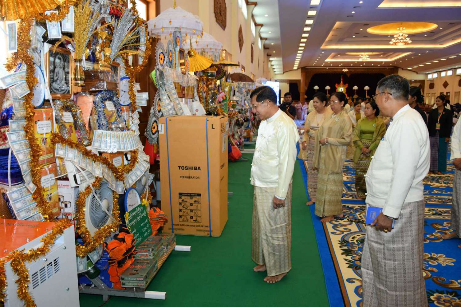 ဆက်လက်ပြီး ကောင်စီအတွင်းရေးမှူး၊ တွဲဖက်အတွင်းရေးမှူးနှင့်ဇနီး၊ ကောင်စီဝင်များနှင့် ဇနီးများ၊ ပြည်ထောင်စုအဆင့်ပုဂ္ဂိုလ်များ၊ ပြည်ထောင်စုဝန်ကြီးများ၊ တပ်မတော်အရာရှိကြီးများက ဆရာတော်၊ သံဃာတော်များထံ ကထိန်သင်္ကန်းနှင့် လှူဖွယ်ပစ္စည်းများကိုလည်းကောင်း အသီးသီး ဆက်ကပ်လှူဒါန်းကြသည်။