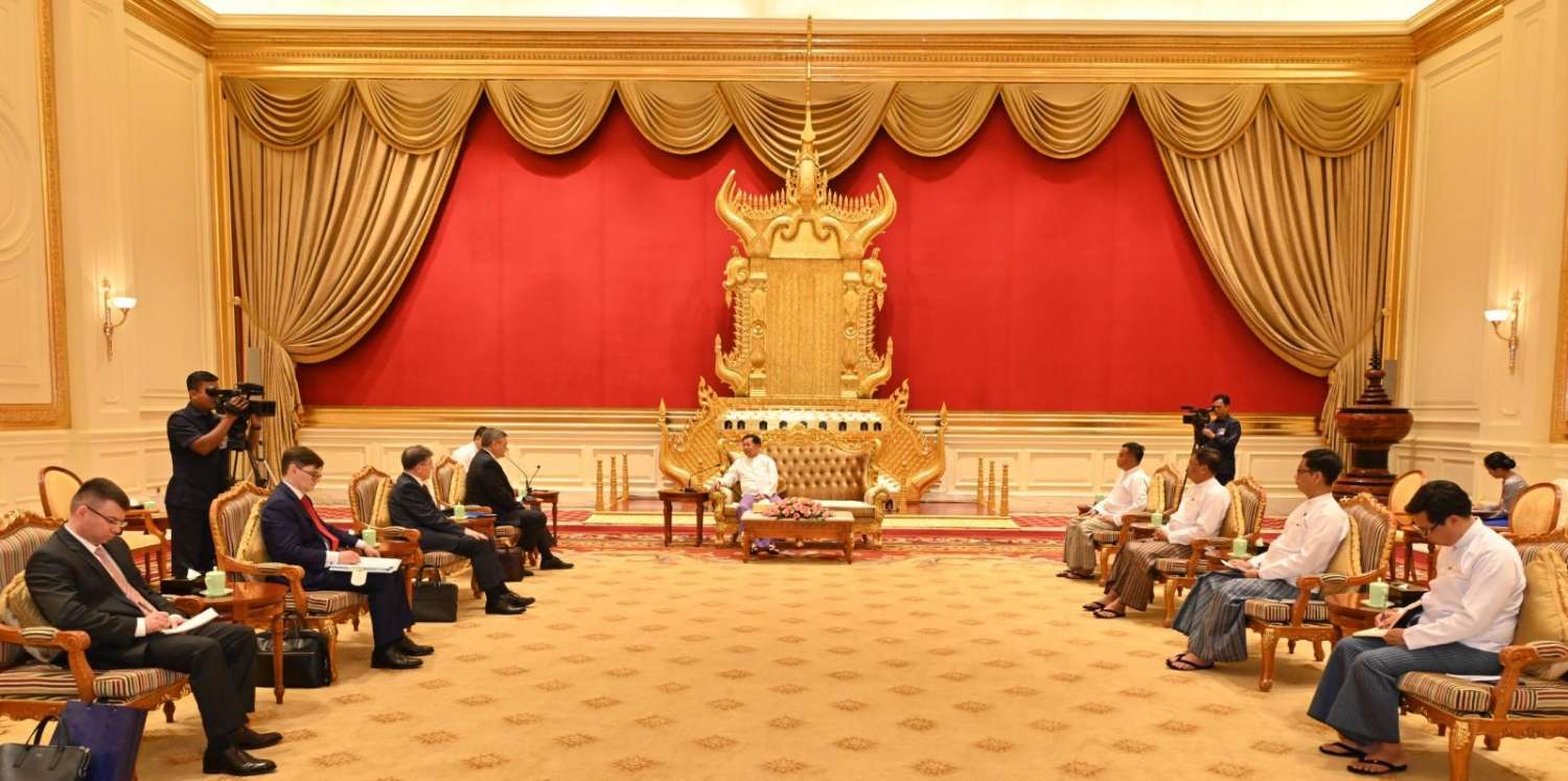 နိုင်ငံတော်စီမံအုပ်ချုပ်ရေးကောင်စီဥက္ကဋ္ဌ နိုင်ငံတော်ဝန်ကြီးချုပ် ဗိုလ်ချုပ်မှူးကြီး မင်းအောင်လှိုင်ထံ ရုရှားဖက်ဒရေးရှင်းနိုင်ငံ၊ နိုင်ငံခြားရေးဝန်ကြီးဌာန ဒုတိယဝန်ကြီး H.E. Mr. Andrey Rudenko ဦးဆောင်သောကိုယ်စားလှယ်အဖွဲ့က ယနေ့ မွန်းလွဲပိုင်းတွင် နေပြည်တော်ရှိ နိုင်ငံတော်စီမံအုပ်ချုပ်ရေးကောင်စီဥက္ကဋ္ဌရုံး သံတမန်ဆောင်ဧည့်ခန်းမ၌ လာရောက်ဂါရဝပြုတွေ့ဆုံသည်။