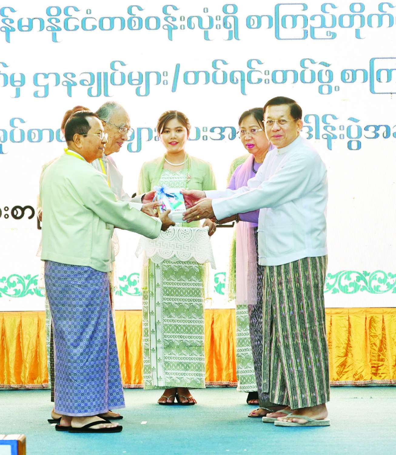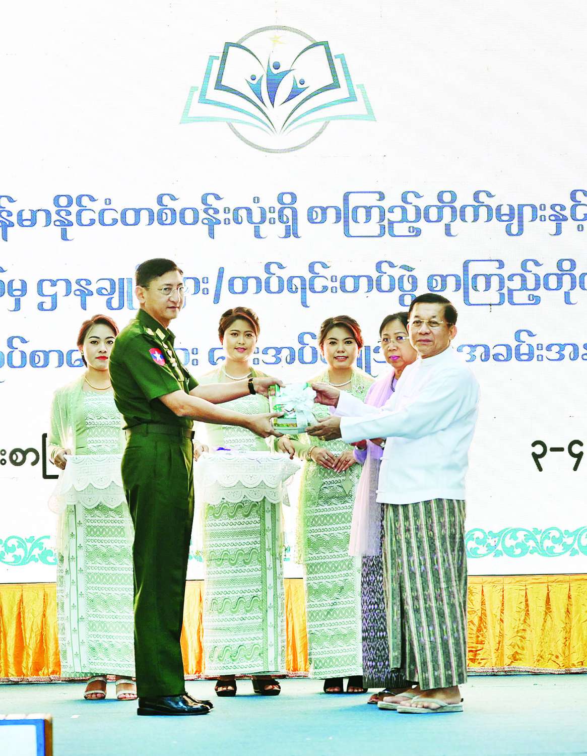 ဆက်လက်၍ တပ်မတော်မှ ဌာနချုပ်၊ တပ်ရင်း၊ တပ်ဖွဲ့ စာကြည့်တိုက်များသို့ နိုင်ငံတော်အစိုးရမှ လှူဒါန်းသော သုတ၊ ရသ စာအုပ် ၂၀၀၀ နှင့် နိုင်ငံ တော်ဝန်ကြီးချုပ်နှင့် ဇနီး မိသားစုတို့မှ လှူဒါန်းသော လူထုသိပ္ပံကျမ်းအတွဲ(၁/၂/၃) စာအုပ် ၁၅၀၀ တို့အား နိုင်ငံတော်စီမံအုပ်ချုပ်ရေးကောင်စီဥက္ကဋ္ဌ နိုင်ငံတော်ဝန်ကြီးချုပ်နှင့် ဇနီးတို့က ပေးအပ်လှူဒါန်းရာ စစ်ရေးချုပ် ဒုတိယဗိုလ်ချုပ်ကြီး စိုးမင်းဦးက လက်ခံရယူသည်။