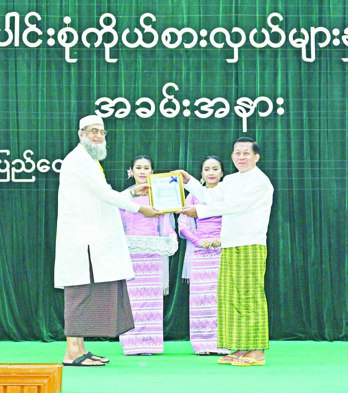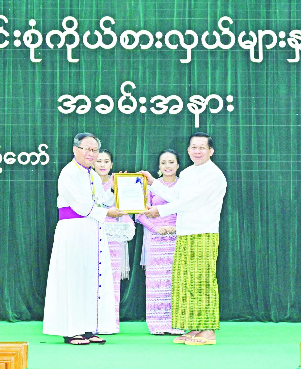 ထို့နောက် နိုင်ငံတော်စီမံအုပ်ချုပ်ရေးကောင်စီဥက္ကဋ္ဌ နိုင်ငံတော်ဝန်ကြီးချုပ်က ဘာသာရေးအသင်းအဖွဲ့များအတွက် ဘာသာရေးဆိုင်ရာလုပ်ငန်းများ ဆောင်ရွက်ရာတွင် လိုအပ်သည့် အဆောက်အဦများ ဆောက်လုပ်နိုင်ရန်အတွက် မြေပေးမိန့်များကို ပေးအပ်ရာ ဗုဒ္ဓဘာသာကိုယ်စားလှယ်၊ ကက်သလစ်ခရစ်ယာန်ဘာသာကိုယ်စားလှယ်၊ နှစ်ခြင်းခရစ်ယာန်ဘာသာကိုယ်စားလှယ်၊ အင်္ဂလီကန်ခရစ်ယာန်ဘာသာကိုယ်စားလှယ်၊ ဆွန်နီအစ္စလာမ်ဘာသာကိုယ်စားလှယ်၊ ရှီယာအစ္စလာမ်ဘာသာကိုယ်စားလှယ်၊ ဟိန္ဒူဘာသာကိုယ်စားလှယ်တို့က လက်ခံရယူကြသည်။