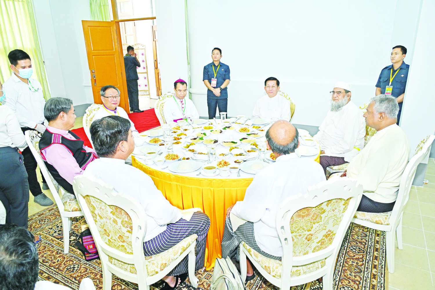အခမ်းအနားအပြီးတွင် နိုင်ငံတော်စီမံအုပ်ချုပ်ရေးကောင်စီဥက္ကဋ္ဌ နိုင်ငံတော်ဝန်ကြီးချုပ်က တက်ရောက်လာကြသည့် ဘာသာပေါင်းစုံအသင်းအဖွဲ့များမှ ဥက္ကဋ္ဌများ၊ တာဝန်ရှိသူများအား နေ့လယ်စာဖြင့် တည်ခင်းဧည့်ခံခဲ့ပြီး ရင်းရင်းနှီးနှီးနှုတ်ဆက်ခဲ့ကြောင်း သတင်းရရှိသည်။