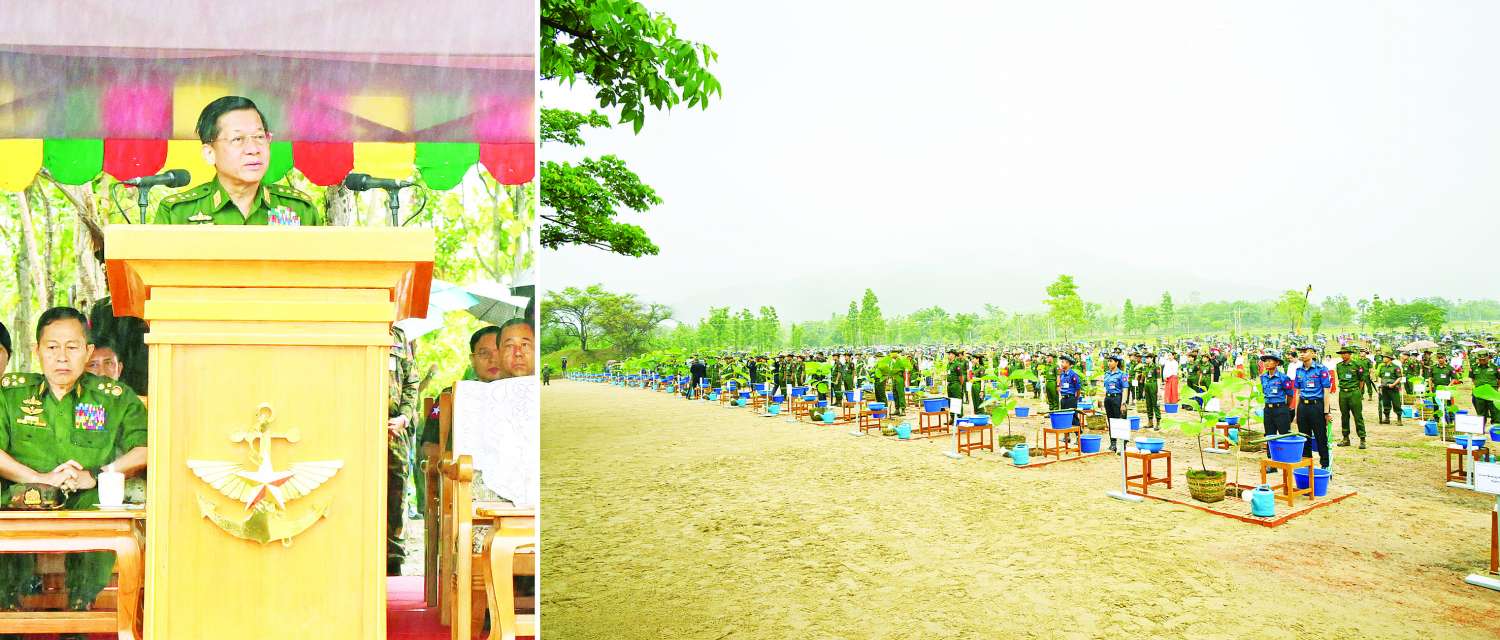 ဦးစွာ နိုင်ငံတော်စီမံအုပ်ချုပ်ရေးကောင်စီဥက္ကဋ္ဌ တပ်မတော်ကာကွယ်ရေးဦးစီးချုပ် ဗိုလ်ချုပ်မှူးကြီး မင်းအောင်လှိုင်က အမှာစကားပြောကြားရာတွင် တပ်မတော်အနေဖြင့် မိုးရာသီသစ်ပင်စိုက်ပျိုးပွဲတော်များကို နှစ်စဉ်ကျင်းပပြုလုပ်၍ သစ်ပင်များကို စုပေါင်းစိုက်ပျိုးခဲ့ကြကြောင်း၊