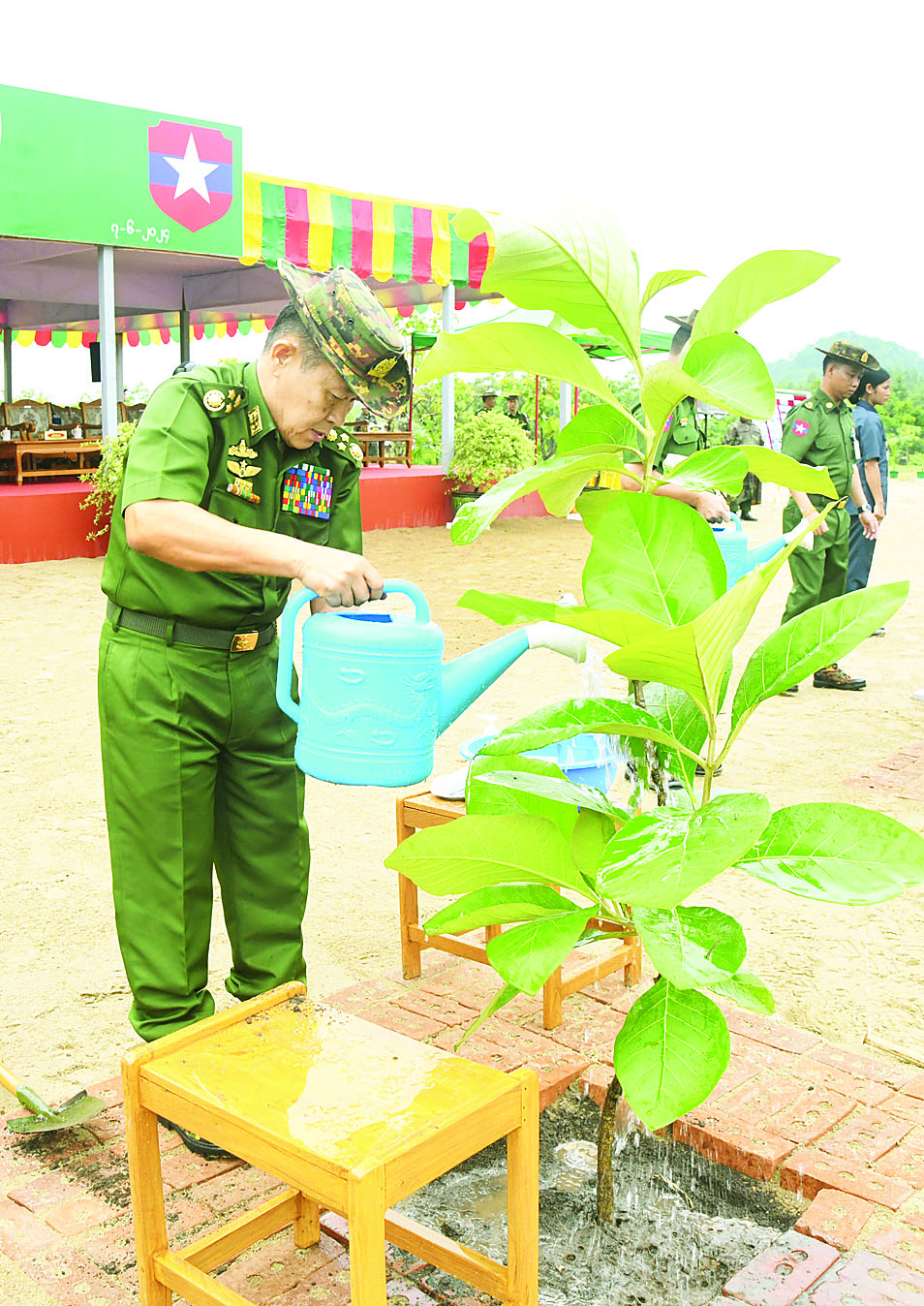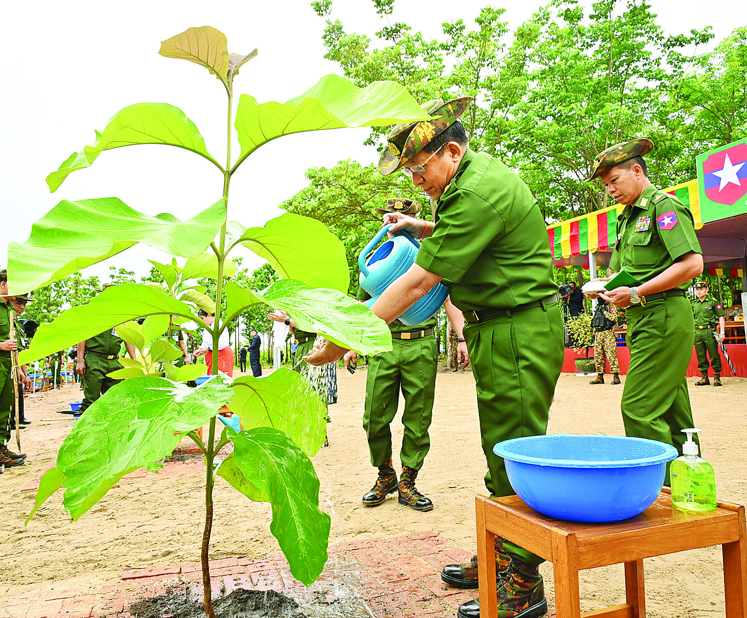 ထို့နောက် နိုင်ငံတော်စီမံအုပ်ချုပ်ရေးကောင်စီဥက္ကဋ္ဌ တပ်မတော်ကာကွယ်ရေးဦးစီးချုပ်နှင့် ဇနီးတို့က ရတနာတန်းဝင်ကျွန်းပင်ကို ဦးဆောင်စိုက်ပျိုးပေးကြသည်။ ဆက်လက်ပြီး နိုင်ငံတော်စီမံအုပ်ချုပ်ရေးကောင်စီ ဒုတိယဥက္ကဋ္ဌ ဒုတိယတပ်မတော်ကာကွယ်ရေးဦးစီးချုပ် ကာကွယ်ရေးဦးစီးချုပ်(ကြည်း) နှင့် ဇနီး၊ ညှိနှိုင်းကွပ်ကဲရေးမှူး (ကြည်း၊ ရေ၊ လေ)နှင့် ဇနီး၊ ကာကွယ်ရေးဦးစီးချုပ် (ရေ)နှင့် ဇနီး၊ ကာကွယ်ရေးဦးစီးချုပ် (လေ)၊ ကာကွယ်ရေးဦးစီးချုပ်ရုံးမှ တပ်မတော်အရာရှိကြီးများနှင့် ဇနီးများ၊ အခမ်းအနားတက်ရောက်လာကြသည့် အရာရှိ၊ စစ်သည်မိသားစုများက သတ်မှတ်နေရာအသီးသီးတွင် သစ်ပင်များကို စိုက်ပျိုးကြသည်။ ယင်းနောက် နိုင်ငံတော်စီမံအုပ်ချုပ်ရေးကောင်စီဥက္ကဋ္ဌ တပ်မတော်ကာကွယ်ရေးဦးစီးချုပ်နှင့် ဇနီး၊ အဖွဲ့ဝင်များသည် အရာရှိ၊ စစ်သည်မိသားစုများ၏ စုပေါင်းသစ်ပင်စိုက်ပျိုးနေမှုအား လှည့်လည်ကြည့်ရှုအားပေးကြသည်။