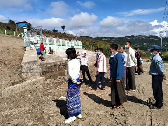 တိုင်းရင်းသား လူမျိုးများရေးရာဝန်ကြီးဌာန၊ ချင်းပြည်နယ်ညွှန်ကြားရေးမှူးရုံး မြေထိန်းနံရံ တည်ဆောက်မှု ၁၀၀ ရာခိုင်နှုန်း ပြီးစီးမှုများအား ပြည်နယ်လူမှုရေးဝန်ကြီး ဦးပေါင်လွန်းမင့်ထန် ကြည့်ရှုစစ်ဆေး