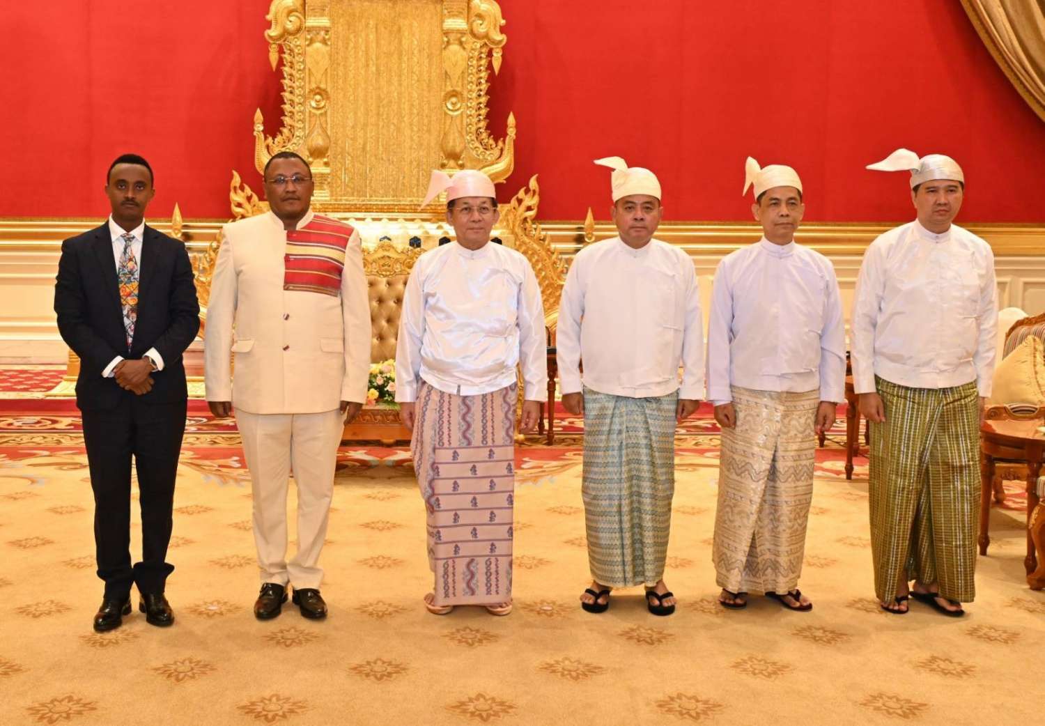 တွေ့ဆုံပွဲအပြီးတွင် နိုင်ငံတော်စီမံအုပ်ချုပ်ရေးကောင်စီဥက္ကဋ္ဌ နိုင်ငံတော်ဝန်ကြီးချုပ်နှင့် မြန်မာနိုင်ငံဆိုင်ရာ အီသီယိုပီးယားဖက်ဒရယ်ဒီမိုကရက်တစ်သမ္မတနိုင်ငံ သံအမတ်ကြီးတို့သည် စုပေါင်းမှတ်တမ်းတင်ဓာတ်ပုံရိုက်ကြသည်။