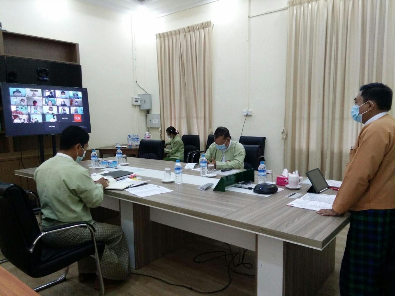 ပဲခူးတိုင်းဒေသကြီးအစိုးရအဖွဲ့ရုံး၊ အစည်းအဝေးခန်းမ၌ ယမန်နေ့နံနက် ၁၀ နာရီခွဲအချိန်က ပဲခူးတိုင်းဒေသကြီး သဘာဝဘေးအန္တရာယ်ဆိုင်ရာ လုပ်ငန်းညှိနှိုင်းအစည်းအဝေးအား Online Meeting စနစ်ဖြင့် ကျင်းပပြုလုပ်သည်။