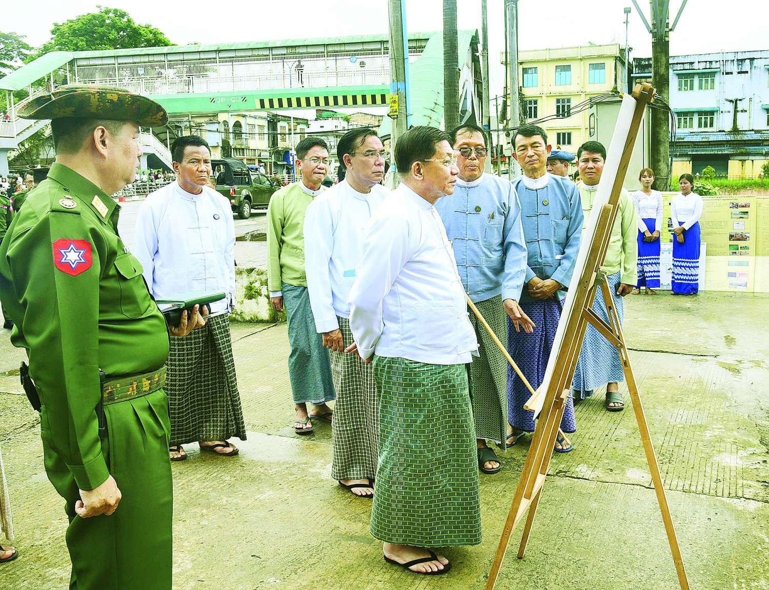 ယင်းနောက် နိုင်ငံတော်စီမံအုပ်ချုပ်ရေးကောင်စီဥက္ကဋ္ဌ နိုင်ငံတော်ဝန်ကြီးချုပ်နှင့် အဖွဲ့ဝင်များသည် ဟံသာဝတီနေပြည်တော်၊ သာယာဝတီတံခါးအနီးရှိ ဟံသာဝတီမြို့ ဟောင်းကျုံးနှင့် မြို့ရိုးနေရာတို့အား ကြည့်ရှုစစ်ဆေးပြီး တာဝန်ရှိသူများ၏ တင်ပြချက်များအပေါ် ကျုံးအား ရေရှည်တည်တံ့စေရေးဆောင်ရွက်ရန်လိုကြောင်း၊ မြို့ရိုးနေရာများအား ပြန်လည်တူးဖော်၍ မြို့ရိုးပြန်လည်တည်ဆောက်သွားရန်နှင့် တည်ဆောက်ချိန်တွင်လည်း လိုအပ်သည့်အချက်အလက်များနှင့် အထောက်အထားများ ပြည့်စုံအောင် ပြုစုဆောင်ရွက်ရန်လိုကြောင်း၊ ပြန်လည်တည်ဆောက်ရာတွင်လည်း ရှေးမူမပျက်မူလပုံစံအတိုင်း တည်ဆောက်သွားနိုင်ရန်လိုကြောင်းနှင့် အခြားလိုအပ်သည်များကို မှာကြားခဲ့ကြောင်း သတင်းရရှိသည်။