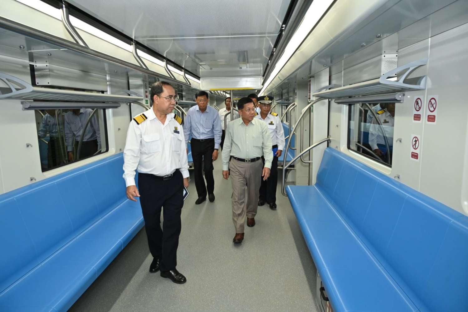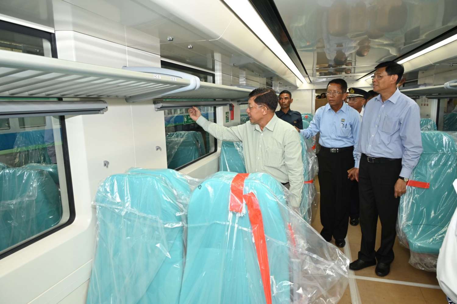 ထို့နောက် နိုင်ငံတော်စီမံအုပ်ချုပ်ရေးကောင်စီဥက္ကဋ္ဌ နိုင်ငံတော်ဝန်ကြီးချုပ်နှင့် အဖွဲ့ဝင်များသည် စပိန်နိုင်ငံမှရောက်ရှိလာသည့် DEMU ရထားတွဲဆိုင်းအသစ်များအား ကြည့်ရှုစစ်ဆေးကာ တာဝန်ရှိသူများ၏ ရှင်းလင်းတင်ပြမှုများအပေါ် လိုအပ်သည်များမှာကြားခဲ့ကြောင်း သတင်းရရှိသည်။