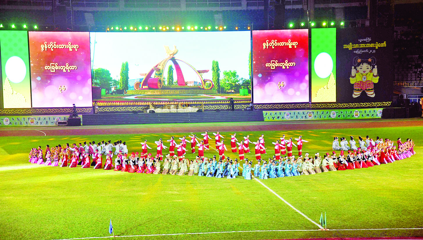 ဘောလုံးအားကစားပြိုင်ပွဲ ဗိုလ်လုပွဲအပြီးတွင် ၂ဝ၂၄ ခုနှစ်၊ ပဉ္စမအကြိမ်မြောက် အမျိုးသားအားကစားပွဲတော် ပိတ်ပွဲအခမ်းအနားကို စတင်ကျင်းပရာ မြန်မာ့ရိုးရာနှစ်သစ်ကူးအတာသင်္ကြန်ပွဲတော်အား ကမ္ဘာ့ဒြပ်မဲ့ယဉ်ကျေးမှုအမွေအနှစ် စာရင်းအဖြစ် သတ်မှတ်ခံရခြင်း အထိမ်းအမှတ်အဖြစ် “ရိုးရာအမွေလက်ဆင့်ကမ်း အတာသင်္ကြန် တစ်ခေတ်ဆန်း” အစီအစဉ်ဖြင့် သီဆိုသရုပ်ဖော်တင်ဆက်မှုကို ကြည့်ရှုအားပေးကြသည်။
