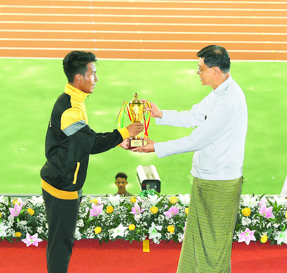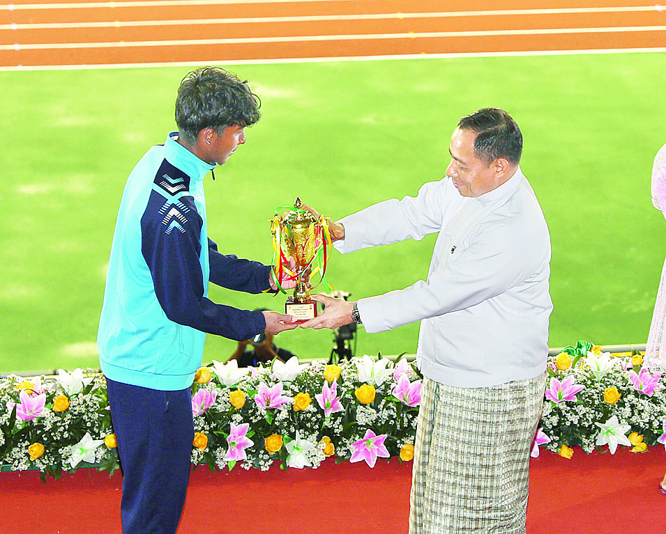 ယင်းနောက် နိုင်ငံတော်စီမံအုပ်ချုပ်ရေးကောင်စီဒုတိယဥက္ကဋ္ဌ ဒုတိယဝန်ကြီးချုပ် ဒုတိယဗိုလ်ချုပ်မှူးကြီး စိုးဝင်းက ပထမဆုရရှိသည့် ဆောက်လုပ်ရေးဝန်ကြီးဌာနအသင်းအား တစ်ဦးချင်း ဆုတံဆိပ်များနှင့် အမျိုးသားအားကစားပွဲတော်အထိမ်းအမှတ် လာဘ်ကောင်ရုပ်များကို ပေးအပ်ချီးမြှင့်သည်။