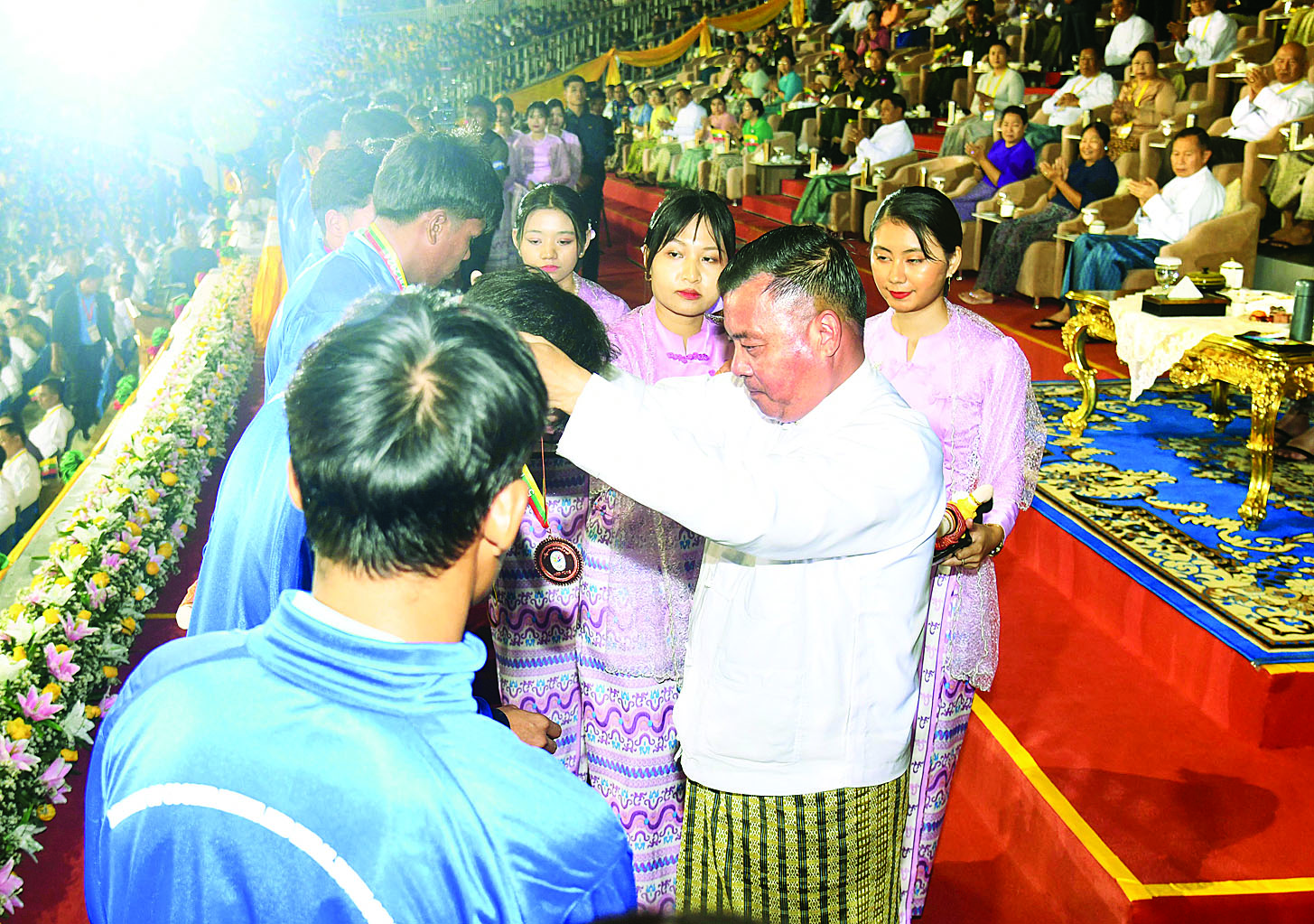 ၂ဝ၂၄ ခုနှစ်၊ ပဉ္စမအကြိမ်မြောက် အမျိုးသားအားကစားပွဲတော် ပိတ်ပွဲအခမ်းအနားကို ယနေ့ညနေပိုင်းတွင် နေပြည်တော်ရှိ ဝဏ္ဏသိဒ္ဓိအားကစားကွင်း၌ ကျင်းပပြုလုပ်ရာ နိုင်ငံတော်စီမံအုပ်ချုပ်ရေးကောင်စီဥက္ကဋ္ဌ နိုင်ငံတော်ဝန်ကြီးချုပ် ဗိုလ်ချုပ်မှူးကြီး မင်းအောင်လှိုင် တက်ရောက်ချီးမြှင့်ပြီး ဂုဏ်ပြုအမှာစကားပြောကြားသည်။