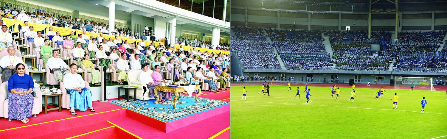 ထို့နောက် နိုင်ငံတော်စီမံအုပ်ချုပ်ရေးကောင်စီဥက္ကဋ္ဌ နိုင်ငံတော်ဝန်ကြီးချုပ်၊ ဇနီးနှင့် ဧည့်သည်တော်များသည် ၂ဝ၂၄ ခုနှစ်၊ ပဉ္စမအကြိမ်မြောက် အမျိုးသားအားကစားပွဲတော် ဘောလုံးအားကစားပြိုင်ပွဲ ဗိုလ်လုပွဲအဖြစ် စီမံကိန်းနှင့်ဘဏ္ဍာရေးဝန်ကြီးဌာနအသင်းနှင့် ဆောက်လုပ်ရေးဝန်ကြီးဌာနအသင်းတို့ အကြိတ်အနယ်ယှဉ်ပြိုင်ကစားနေမှုကို ကြည့်ရှုအားပေးကြသည်။ အဆိုပါပွဲစဉ်တွင် စီမံကိန်းနှင့်ဘဏ္ဍာရေးဝန်ကြီးဌာနအသင်းနှင့် ဆောက်လုပ်ရေးဝန်ကြီးဌာနအသင်းတို့သည် ဗိုလ်လုပွဲသို့တက်ရောက်လာကြသည့် အသင်းများဖြစ်သည်နှင့်အညီ တစ်ဖက်နှင့်တစ်ဖက် အပြန်အလှန်အကြိတ်အနယ် ဖိအားပေးယှဉ်ပြိုင်ကစားခဲ့ကြပြီး ပွဲကစားချိန် ၈၇ မိနစ်တွင် သွင်းယူခဲ့သည့် တစ်လုံးတည်းသောအဖိုးတန်အနိုင်ဂိုးဖြင့် ဆောက်လုပ်ရေးဝန်ကြီးဌာနအသင်းက အနိုင်ရဗိုလ်စွဲခဲ့သည်။