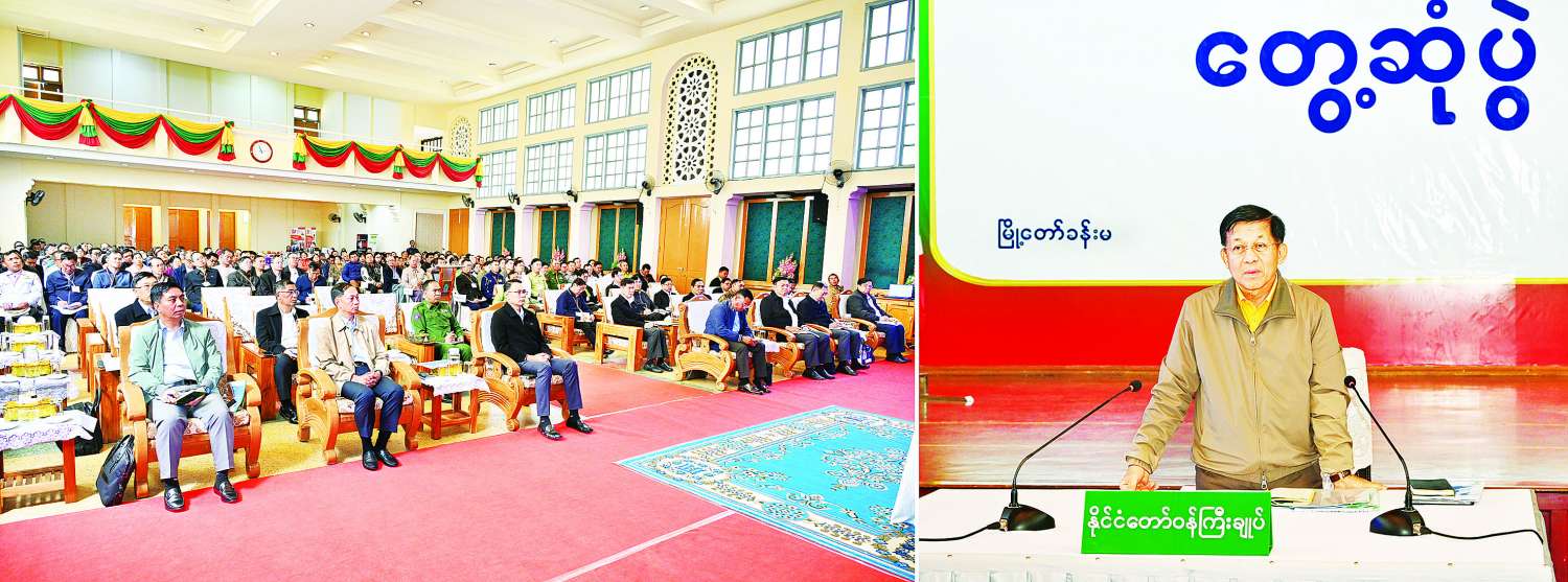 နိုင်ငံတော်စီမံအုပ်ချုပ်ရေးကောင်စီဥက္ကဋ္ဌ နိုင်ငံတော်ဝန်ကြီးချုပ် ဗိုလ်ချုပ်မှူးကြီး မင်းအောင်လှိုင်သည် ယနေ့နံနက်ပိုင်းတွင် မန္တလေးတိုင်းဒေသကြီး ပြင်ဦးလွင်မြို့ရှိ အသေးစား၊ အငယ်စားနှင့် အလတ်စားစီးပွားရေး(MSME)လုပ်ငန်းရှင်များအား ပြင်ဦးလွင်မြို့ မြို့တော်ခန်းမ၌တွေ့ဆုံ၍ ဒေသဖွံ့ဖြိုးတိုးတက်ရေးနှင့် ဒေသထုတ်ကုန်များ တိုးမြှင့်ထုတ်လုပ်နိုင်ရေးဆိုင်ရာများကို ဆွေးနွေးသည်။