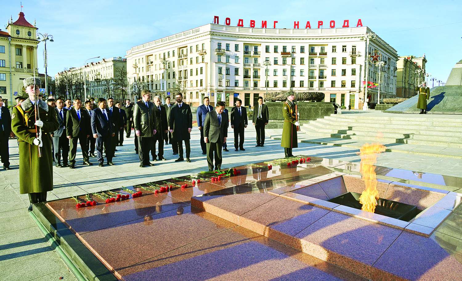 ဆက်လက်၍ နိုင်ငံတော်စီမံအုပ်ချုပ်ရေးကောင်စီဥက္ကဋ္ဌ နိုင်ငံတော်ဝန်ကြီးချုပ်က The Victory Monument ၌ လွမ်းသူ့ပန်းခွေချအလေးပြုသည်။ လွမ်းသူပန်းခွေချအလေးပြုစဉ်အချိန်၌ ဘီလာရုစ်နိုင်ငံ ဂုဏ်ပြုတပ်ဖွဲ့က ပြည်ထောင်စုသမ္မတမြန်မာနိုင်ငံတော် နိုင်ငံတော်သီချင်းနှင့် ဘီလာရုစ်သမ္မတနိုင်ငံတော်သီချင်းတို့အား တီးမှုတ်ကြသည်။