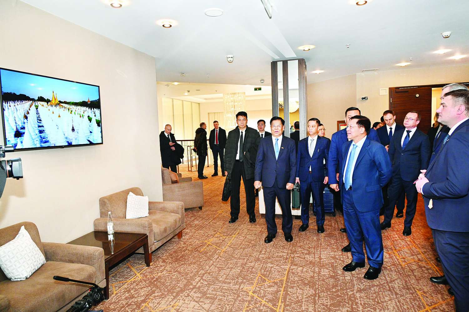 ရုရှားဖက်ဒရေးရှင်းနိုင်ငံ နိုဗိုစီဗစ်မြို့၊ ကောင်စစ်ဝန်ချုပ်ရုံးဖွင့်ပွဲအခမ်းအနားကို ယနေ့ဒေသစံတော်ချိန် နံနက်ပိုင်းတွင် Grand Autograph ဟိုတယ်၌ ကျင်းပပြုလုပ်ရာ ရုရှားနိုင်ငံသို့ တရားဝင်ချစ်ကြည်ရေးခရီး ရောက်ရှိနေသည့် နိုင်ငံတော်စီမံအုပ်ချုပ်ရေးကောင်စီဥက္ကဋ္ဌ နိုင်ငံတော်ဝန်ကြီးချုပ် ဗိုလ်ချုပ်မှူးကြီး မင်းအောင်လှိုင် တက်ရောက်ဖွင့်လှစ်ပေးသည်။