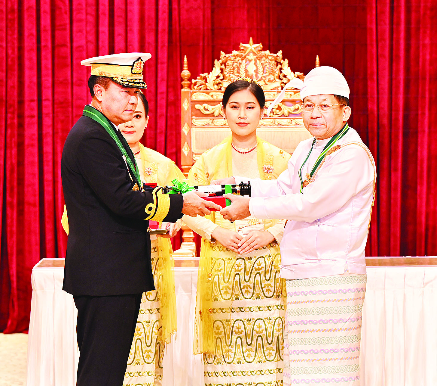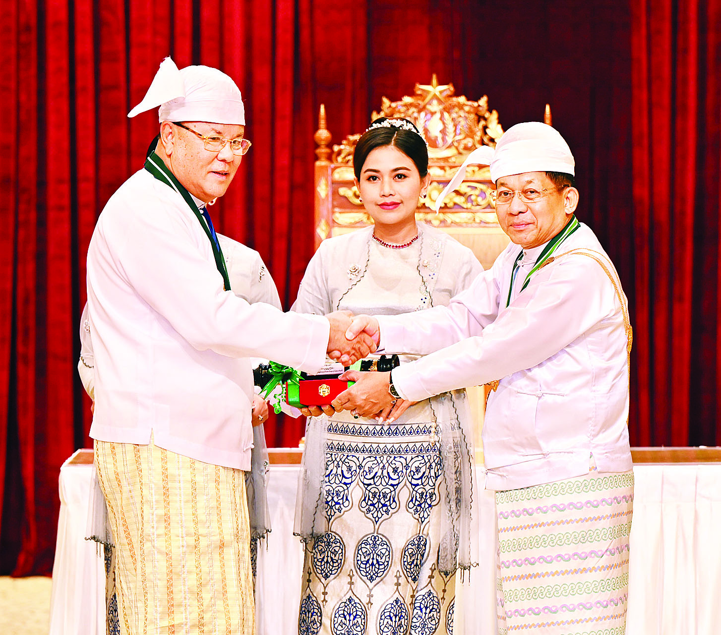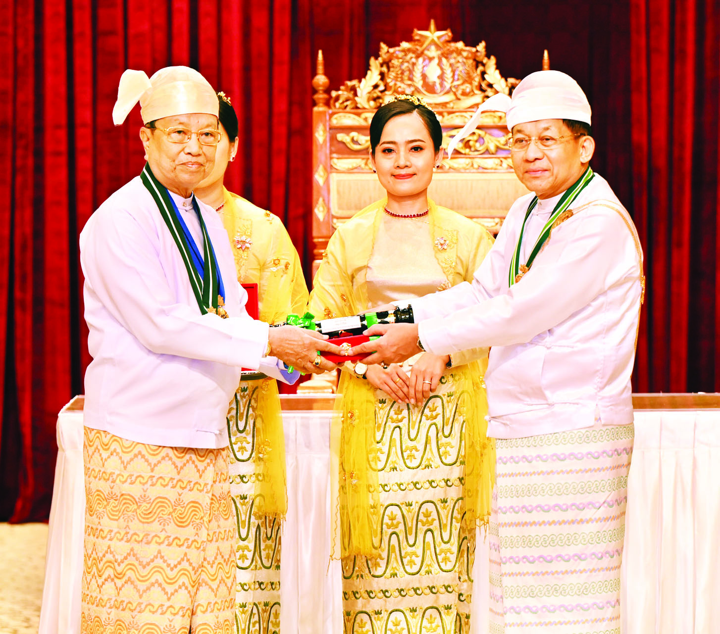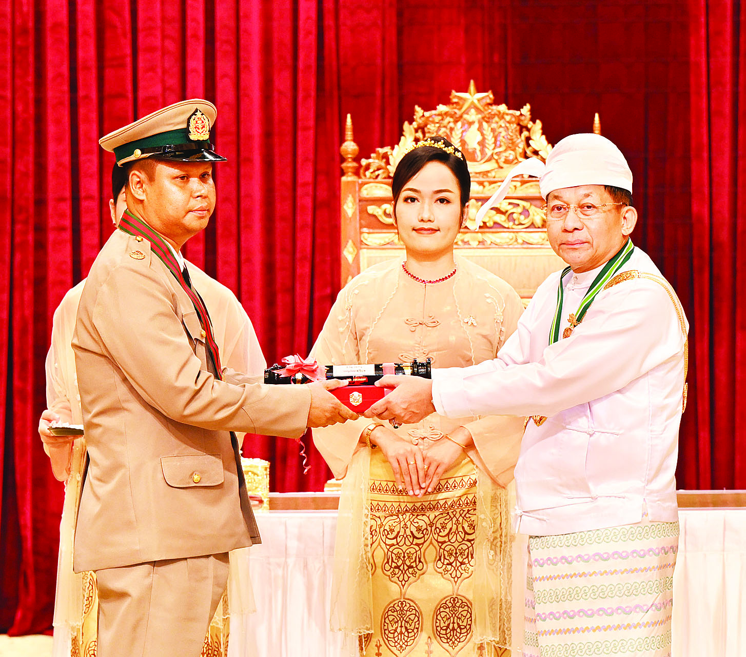 ယင်းနောက် နိုင်ငံတော်စီမံအုပ်ချုပ်ရေးကောင်စီဥက္ကဋ္ဌ နိုင်ငံတော်ဝန်ကြီးချုပ် ဗိုလ်ချုပ်မှူးကြီး သတိုးမဟာသရေစည်သူ သတိုးသီရိသုဓမ္မ မင်းအောင်လှိုင်က ပြည်ထောင်စုစည်သူသင်္ဂဟဘွဲ့များဖြစ်ကြသည့် စည်သူဘွဲ့ရရှိသူ ၁၃ ဦး၊ တပ်မတော် စွမ်းရည်သတ္တိဆိုင်ရာဘွဲ့များဖြစ်ကြသည့် သူရဘွဲ့ရရှိသူ ၃ ဦး၊ စွမ်းဆောင်မှုဆိုင်ရာ ဂုဏ်ထူးဆောင်ဘွဲ့များဖြစ်ကြသည့် ဇေယျကျော်ထင်ဘွဲ့ရရှိသူ ၁၇ ဦး၊ ဝဏ္ဏကျော်ထင်ဘွဲ့ ရရှိသူ ၁၄ ဦး၊ အလင်္ကာကျော်စွာဘွဲ့ရရှိသူ ၁ ဦး၊ သိပ္ပကျော်စွာဘွဲ့ရရှိသူ ၂ ဦးတို့ကို ဂုဏ်ထူးဆောင်ဘွဲ့များ တစ်ဦးချင်းလက်ရောက်ချီးမြှင့်အပ်နှင်းပေးသည်။