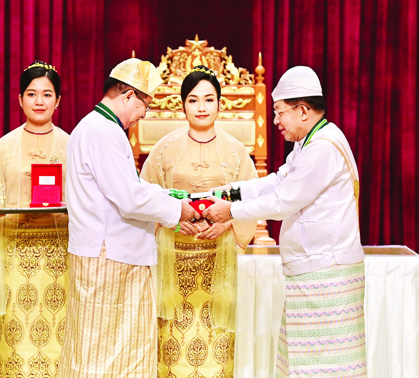 နိုင်ငံတော်စီမံအုပ်ချုပ်ရေးကောင်စီဥက္ကဋ္ဌ နိုင်ငံတော်ဝန်ကြီးချုပ် ဗိုလ်ချုပ်မှူးကြီး သတိုးမဟာသရေစည်သူ သတိုးသီရိသုဓမ္မမင်းအောင်လှိုင် ၂၀၂၅ ခုနှစ်၊ ဂုဏ်ထူးဆောင်ဘွဲ့များ ချီးမြှင့်အပ်နှင်းခြင်းအခမ်းအနားသို့ တက်ရောက်ချီးမြှင့်