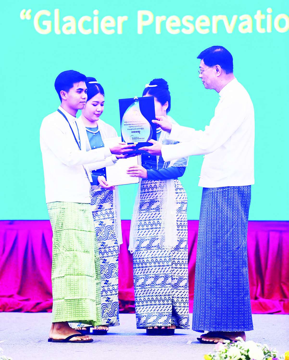 ထို့နောက် နိုင်ငံတော်စီမံအုပ်ချုပ်ရေးကောင်စီဥက္ကဋ္ဌ နိုင်ငံတော်ဝန်ကြီးချုပ်က ကမ္ဘာ့ရေနေ့ ၂၀၂၅ အထိမ်းအမှတ်အလွတ်တန်းအဆင့်ဆောင်းပါးပြိုင်ပွဲတွင် ပထမ၊ ဒုတိယနှင့် တတိယ ဆုရရှိခဲ့ကြသူများကို ဆုများပေးအပ်ချီးမြှင့်သည်။