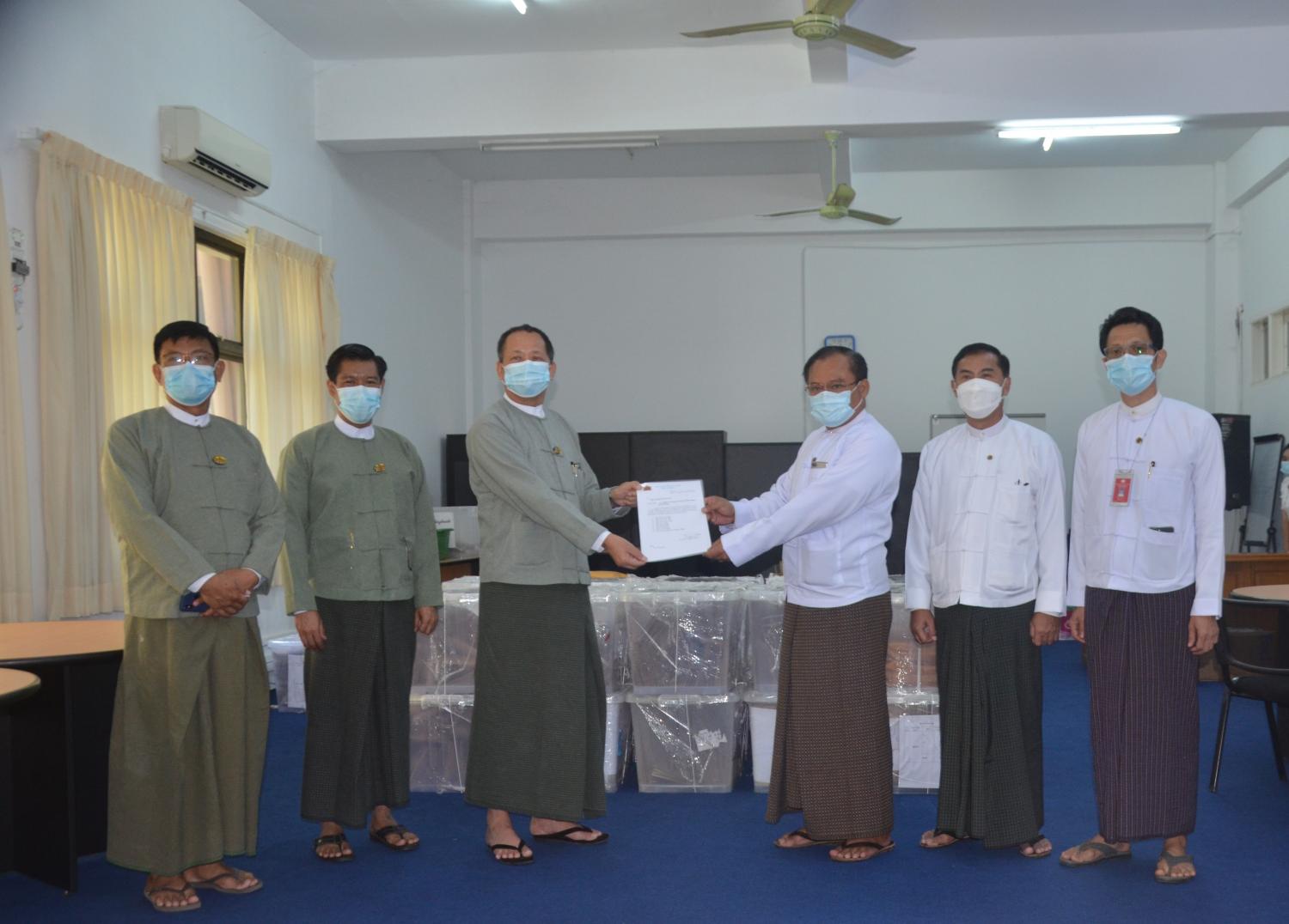 ပြည်ပရှိ မြန်မာသံရုံး၊ အဖွဲ့ရုံး၊ ကောင်စစ်ဝန်ချုပ်ရုံး (၈)ရုံးတို့မှ ပေးပို့လာသော ဆန္ဒပြုပြီး ကြိုတင်ဆန္ဒမဲလက်မှတ်များပါဝင်သည့် ချိတ်ပိတ်ထားသော သံတမန်ချောအိတ်များအား နိုင်ငံခြားရေးဝန်ကြီးဌာနမှ ပြည်ထောင်စုရွေးကောက်ပွဲကော်မရှင်သို့ ယနေ့တွင် လွှဲပြောင်း ပေးအပ်ခဲ့ပြီးဖြစ်သည်။