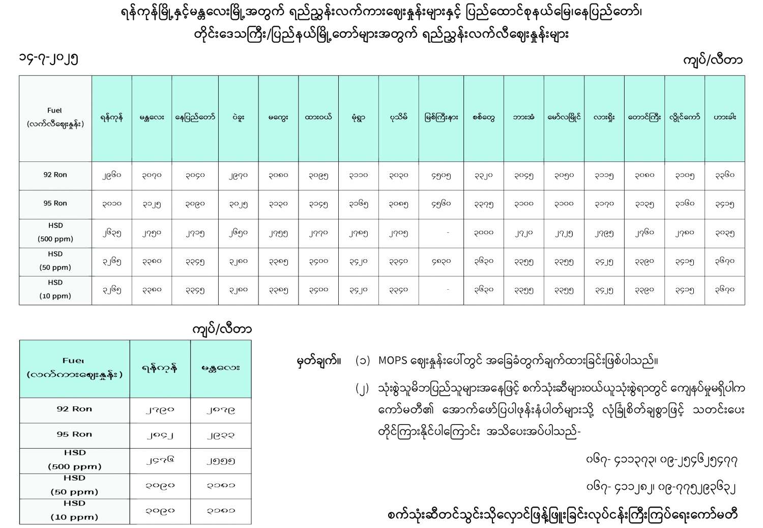 ရန်ကုန်မြို့နှင့် မန္တလေးမြို့အတွက် ရည်ညွှန်းလက်ကားဈေးနှုန်းများနှင့် ပြည်ထောင်စုနယ်မြေ နေပြည်တော်၊ တိုင်းဒေသကြီး/ ပြည်နယ် မြို့တော်များအတွက် ရည်ညွှန်းလက်လီဈေးနှုန်းများ 07/14/2025