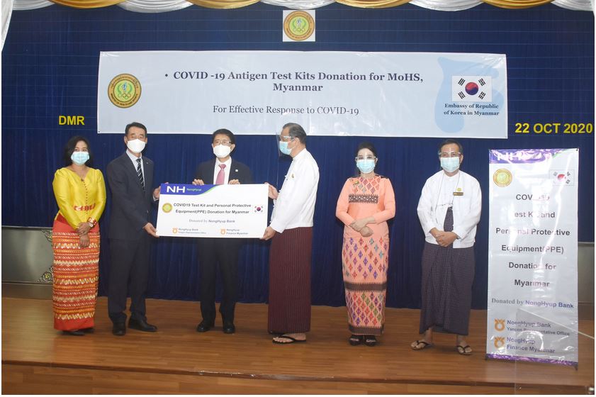 ယနေ့ လှူဒါန်းပွဲတွင် လတ်တလော အသက်ရှူလမ်းကြောင်းဆိုင်ရာ ကိုဗစ်-၁၉ ရောဂါ ကာကွယ်နိုင်ရန်အတွက် ကျန်းမာရေးနှင့် အားကစားဝန်ကြီးဌာနသို့ Shinhan Bank က အမေရိကန် ဒေါ်လာ ၇၀၀၀ နှင့် ညီမျှသော Covid-19 Antigen Test Kits (၁၀၀၀) ၊ Shwe Daehan Motors Co., Ltd က အမေရိကန် ဒေါ်လာ ၇၀၀၀ နှင့် ညီမျှသော Covid-19 Antigen Test Kits (၁၀၀၀) နှင့် NongHyup Bank and NongHyup Finance Myanmar က အမေရိကန်ဒေါ်လာ ၁၅၀၀၀ နှင့် ညီမျှသော COVID-19 Antigen Test Kits (၂၅၀၀) နှင့် ငွေကျပ် ၁၈၅ သိန်းနှင့်ညီမျှသော PPE အစုံ (၁၀၀၀)ကို လှူဒါန်းခဲ့ခြင်းဖြစ်ကြောင်း သိရသည်။