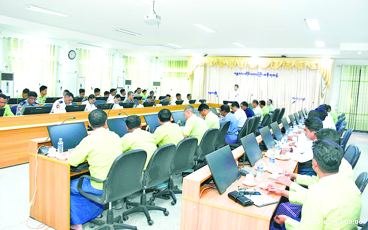 တရားမဝင်စက်သုံးဆီနှင့် ကုန်စည်များ ဖြတ်သန်းသယ်ဆောင်မှုမရှိစေရေးနှင့်စပ်လျဉ်း၍ စိစစ်ရေးလုပ်ငန်းအဖွဲ့အစည်းအဝေးကို ယနေ့နံနက်ပိုင်းတွင် မန္တလေးတိုင်းဒေသကြီး အစိုးရအဖွဲ့ရုံးအစည်းအဝေးခန်းမ၌ကျင်းပရာ မန္တလေးတိုင်းဒေသကြီးဝန်ကြီးချုပ် ဦးမျိုးအောင် တက်ရောက်အမှာစကားပြောကြားသည်။