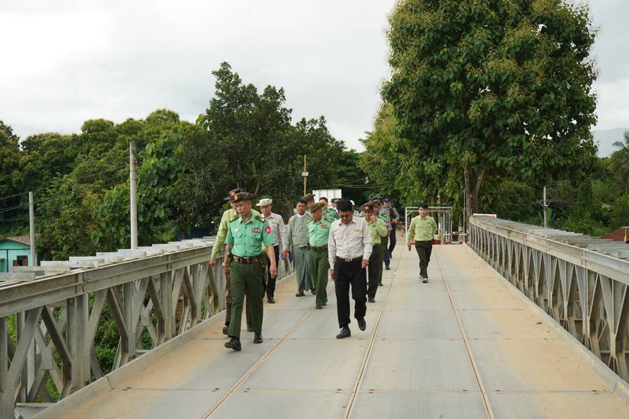 ရှမ်းပြည်နယ်(အရှေ့ပိုင်း) မိုင်းဆတ်မြို့နယ် မိုင်းဆတ်-တာချီလိတ်လမ်းပေါ်ရှိ ဆိုက်ခေါင်တံတားသစ်စီမံကိန်းနေရာနှင့် လက်ရှိအသုံးပြုလျက်ရှိသော ဘေလီတံတား၏ ကြံ့ခိုင်မှုအခြေအနေများအား ဇူလိုင် ၁၄ ရက်ညနေပိုင်းတွင် တြိဂံဒေသတိုင်းစစ်ဌာနချုပ်တိုင်းမှူး ဗိုလ်ချုပ်စိုးလှိုင်နှင့် တာဝန်ရှိသူများက သွားရောက်ကြည့်ရှုစစ်ဆေးသည်။
