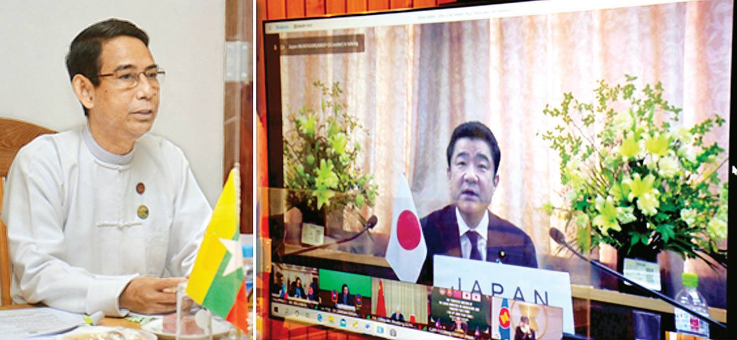 အာဆီယံနှင့်အပေါင်းသုံးနိုင်ငံများအကြား စားနပ်ရိက္ခာ၊ စိုက်ပျိုးရေးနှင့် သစ်တောကဏ္ဍဆိုင်ရာ ပူးပေါင်းဆောင်ရွက်မှု နည်းဗျူဟာလုပ်ငန်းစဉ် (၂၀၁၆-၂၀၂၅) အောက်မှ ဆောင်ရွက်လျက်ရှိသည့် စီမံကိန်းလုပ်ငန်းများနှင့်စပ်လျဉ်း၍ ဆွေးနွေးရာတွင် အာဆီယံ အပေါင်းသုံး အရေးပေါ် ဆန်အရန်ရိက္ခာ သဘောတူညီချက်၏အစီအစဉ် (၃) အရ အရေးပေါ် ဆန်အရန်ရိက္ခာများ ထောက်ပံ့ပေးခဲ့မှုများ၊ ရာသီဥတုပြောင်းလဲမှုဆိုင်ရာ စီမံကိန်း (၂) ခု၏ ဆောင်ရွက်မှုများ၊ အာဆီယံဒေသတွင်း (Fall Army Worm-FAW) ဖောငမြှောင်တောင် ကျရောက်မှုအတွက် အကောင်အထည်ဖော်မှု လုပ်ငန်းစဉ် (၂၀၂၀-၂၀၂၅) အား ထောက်ပံ့ကူညီပေးမှု၊စွမ်းဆောင်ရည်မြှင့်တင်ရေးစီမံကိန်းအရ ဂျပန်နိုင်ငံမှ နည်းပညာဆိုင်ရာ ထောက်ပံ့ပေးမှု၊ အပေါင်းသုံးနိုင်ငံများမှ အာဆီယံနိုင်ငံများသို့ စိုက်ပျိုးရေး၊ မွေးမြူရေး၊ ရေလုပ်ငန်းနှင့် သစ်တောကဏ္ဍ ဖွံ့ဖြိုးတိုးတက်ရေး နည်းပညာနှင့် ငွေကြေးအထောက်အကူပေးခဲ့မှုများနှင့် စပ်လျဉ်း၍ ဆွေးနွေးခဲ့ကြသည်။