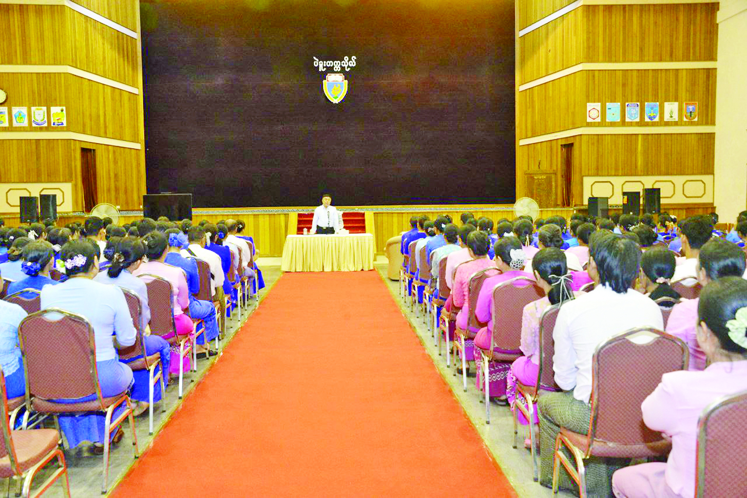 ထို့နောက် ပြည်ထောင်စုဝန်ကြီးသည် ရန်ကုန်တိုင်းဒေသကြီး လှည်းကူးပညာရေးဒီဂရီကောလိပ်သို့ ရောက်ရှိပြီး ကျောင်းအုပ်ကြီး၊ ဆရာ ဆရာမများ၊ သင်တန်းသား သင်တန်းသူများနှင့် တွေ့ဆုံ၍ သင်တန်းသား သင်တန်းသူများအနေဖြင့် ဆရာ ဆရာမများ ဖြစ်လာကြမည့်သူများဖြစ်၍ အနာဂတ်၏ ပဲ့ကိုင်ရှင်များဖြစ် ကြောင်း၊ ဆရာ ဆရာမများ ဖြစ်လာပါက စည်းကမ်းပြည့်ဝသော အမှန်တကယ် တတ်မြောက်သူများဖြစ်စေရန် စေတနာအပြည့်ထား၍ သင်ကြားပေးကြစေလိုကြောင်း၊ ကျောင်းသားများကို လိမ္မာယဉ်ကျေးအောင်၊ နိုင်ငံချစ်စိတ်၊ မျိုးချစ်စိတ်ရှိအောင် သင်ကြားပေး စေလိုကြောင်း ပြောကြားသည်။