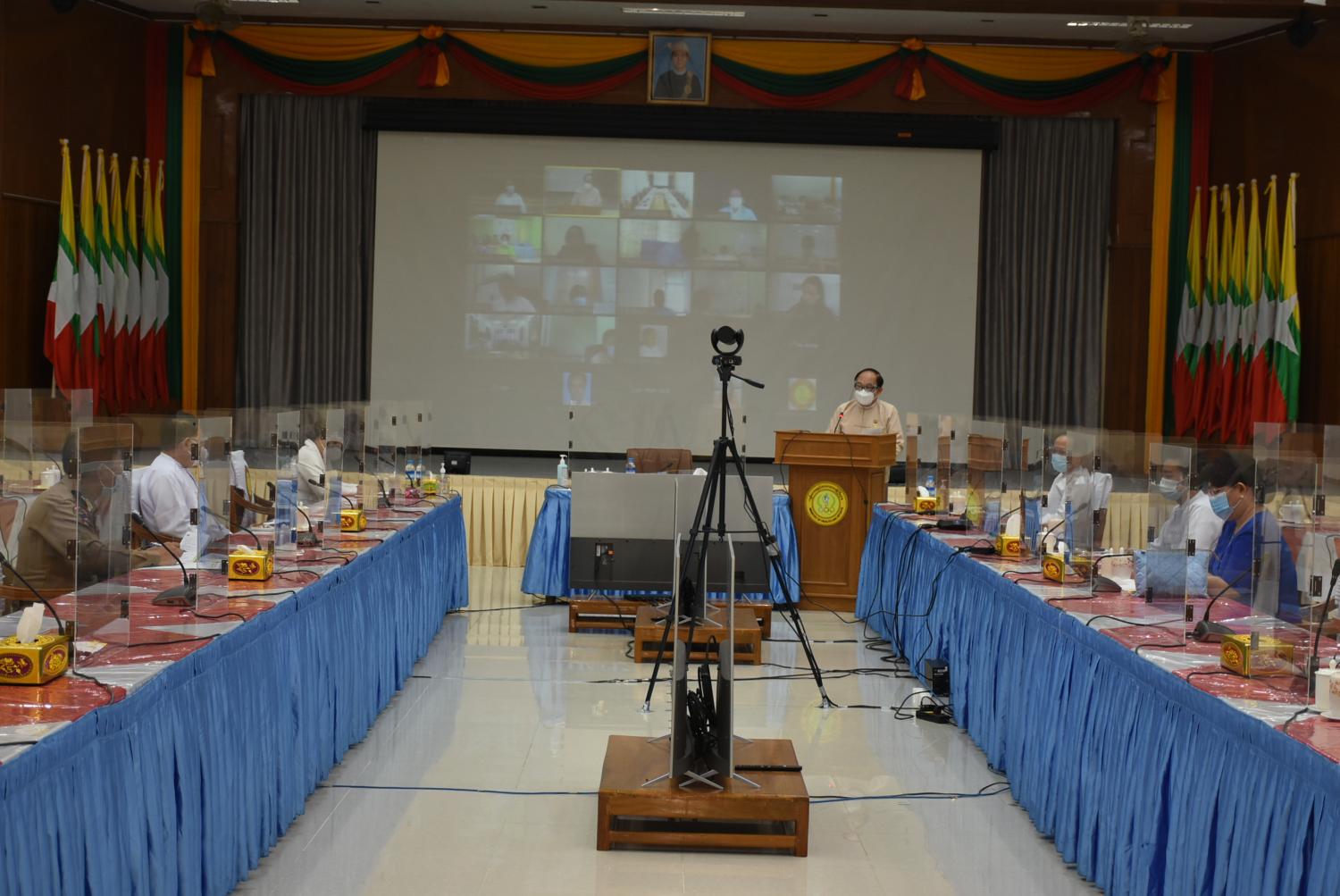 ထို့နောက် အစည်းအဝေးသို့ ဗီဒီယိုကွန်ဖရင့် စနစ်ဖြင့် တက်ရောက်လာကြသည့် ကျန်းမာရေး နှင့် အားကစားဝန်ကြီးဌာန တိုင်းဒေသကြီး/ ပြည်နယ် ပြည်သူ့ကျန်းမာရေးနှင့်ကုသရေး ဦးစီးဌာနမှူး များက အသီးသီးတင်ပြကြသည်။