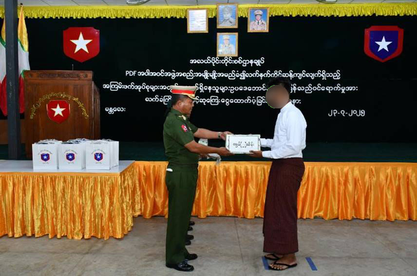 နိုင်ငံတော်စီမံအုပ်ချုပ်ရေးကောင်စီသည် PDF အပါအဝင် အဖွဲ့အစည်းအမျိုးမျိုး အမည်ခံ၍ လက်နက်ကိုင်ဆန့်ကျင်လျက်ရှိသည့် အဖွဲ့အစည်းများအတွင်း ရောက်ရှိနေသူများအား ဥပဒေဘောင်အတွင်းသို့ ပြန်လည်ဝင်ရောက်ရန် ဖိတ်ခေါ်၍ ဥပဒေဘောင်အတွင်းသို့ ပြန်လည်ဝင်ရောက်လာကြသူများကိုလည်း လိုအပ်သည့် ကူညီပံ့ပိုးမှုများ ဆောင်ရွက်ပေးလျက်ရှိသည်။