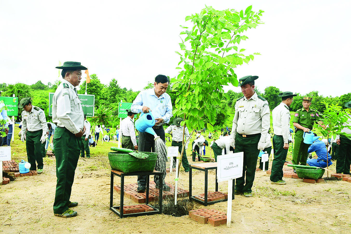 နေပြည်တော်စိမ်းလန်းစိုပြည်ရေးနှင့် သဘာဝပတ်ဝန်းကျင်ထိန်းသိမ်းနိုင်ရေးအတွက် မိုးရာသီသစ်ပင်စိုက်ပျိုးပွဲကို ယနေ့နံနက်ပိုင်းတွင် ဒက္ခိဏသီရိမြို့နယ် မာရဝိဇယဘုရားအနီး ရန်အောင်မြင်ကြိုးဝိုင်း၌ ကျင်းပရာ နေပြည်တော်ကောင်စီဥက္ကဋ္ဌ ဦးသန်းထွန်းဦး၊ နေပြည်တော်ကောင်စီဝင်များ၊ နေပြည်တော်စည်ပင်သာယာရေးကော်မတီ ဒုတိယမြို့တော်ဝန်နှင့် ကော်မတီဝင်များ၊ ဌာနဆိုင်ရာများ တက်ရောက်ကြသည်။