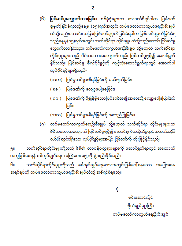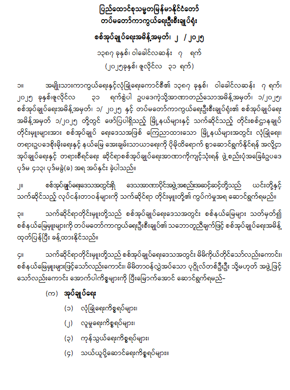 နိုင်ငံတော်သမ္မတ၏ မိန့်ခွန်းလမ်းညွှန်ချက်အပေါ် သက်ဆိုင်ရာလုပ်ငန်းဌာနအလိုက် ဆောင်ရွက်မည့် အခြေအနေများ ရှင်းလင်း