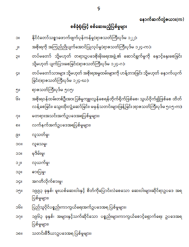 ပြဌာန်းပြီးဥပဒေများ