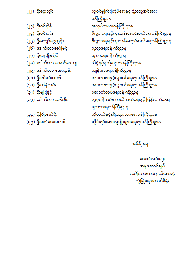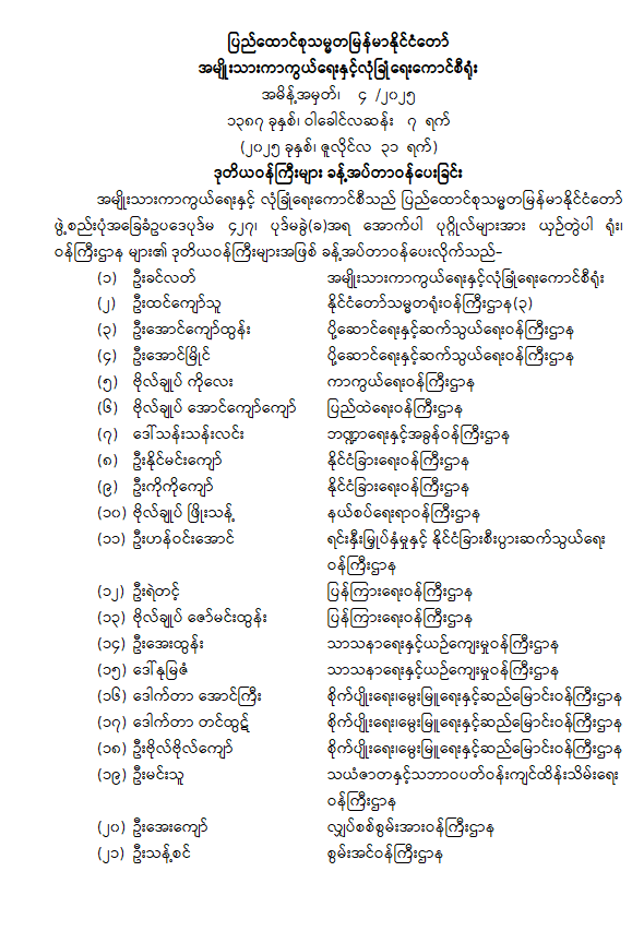 ဒုတိယဝန်ကြီးများ ခန့်အပ်တာဝန်ပေးခြင်း
